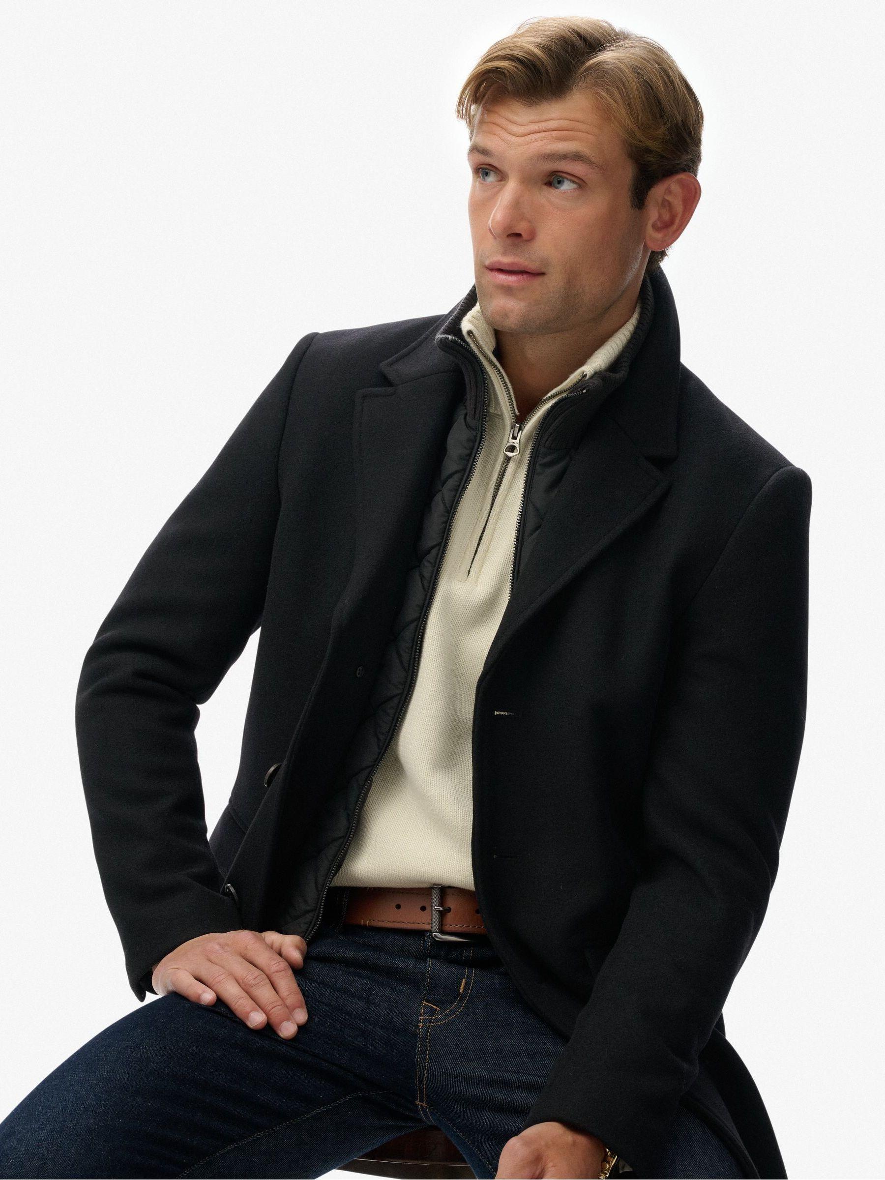 Superdry Black Tailored 2 In 1 Town Coat