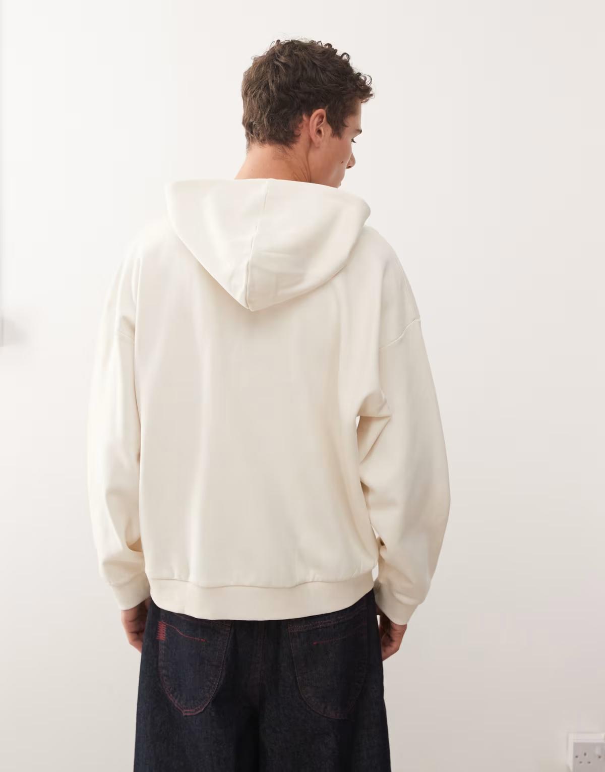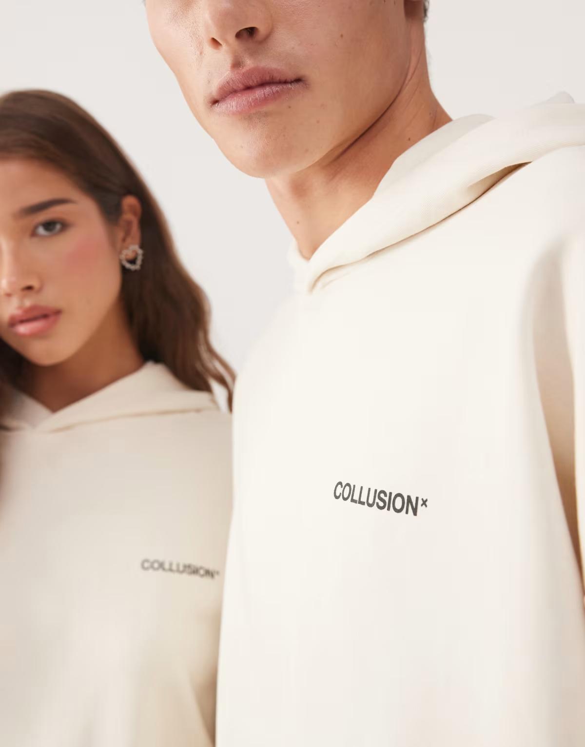 COLLUSION Unisex boxy hoodie in ecru with logo print