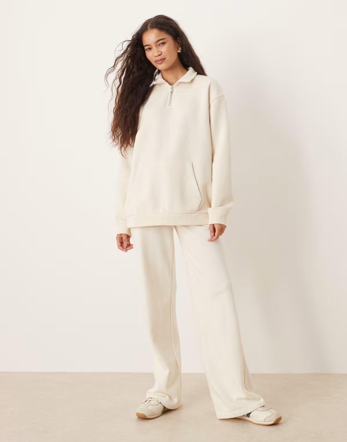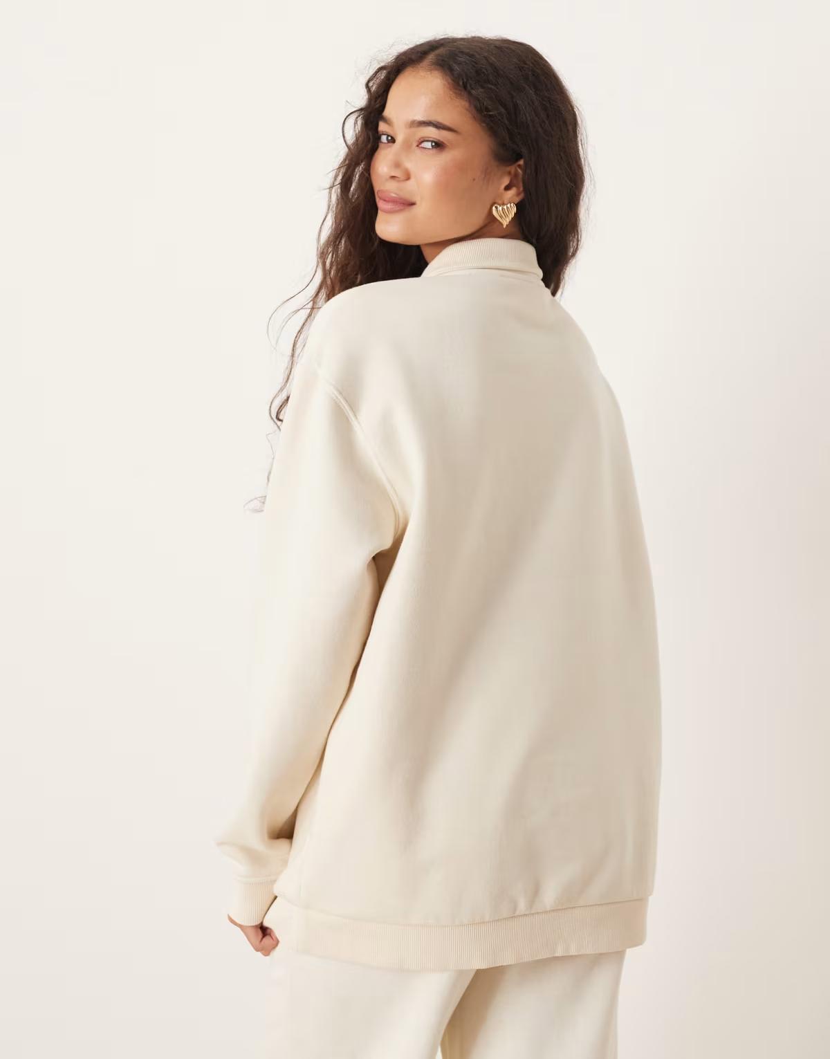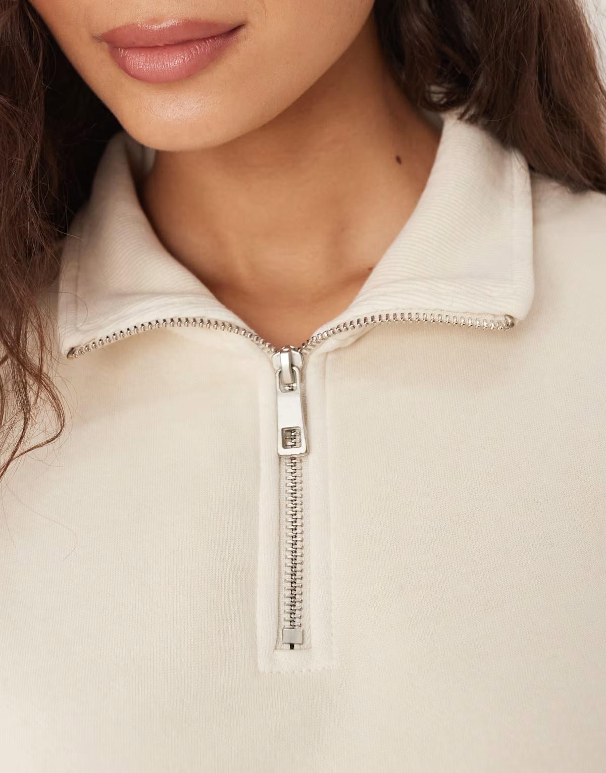 Brave Soul Quarter zip funnel neck sweatshirt in cream