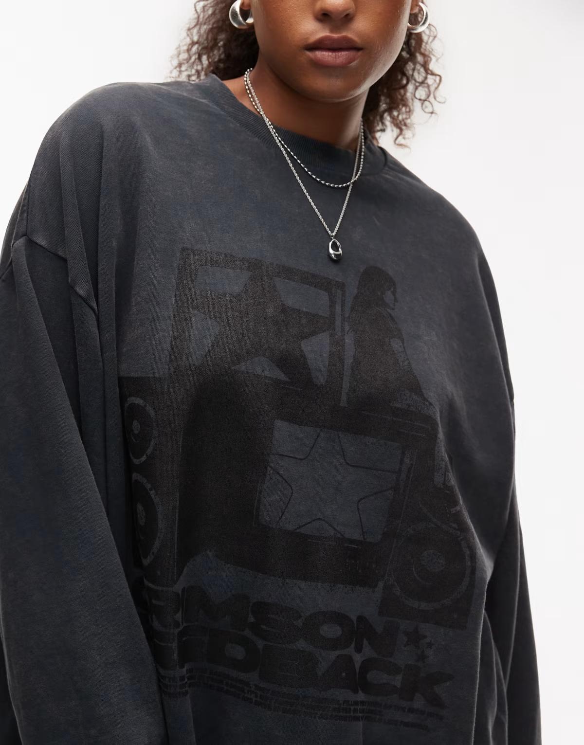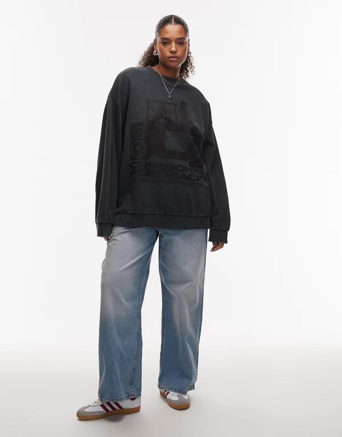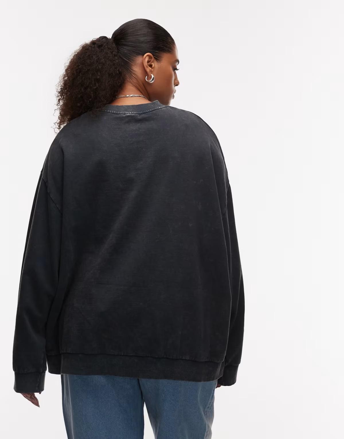 ASOS DESIGN Curve oversized sweat with vintage band graphic in washed grey