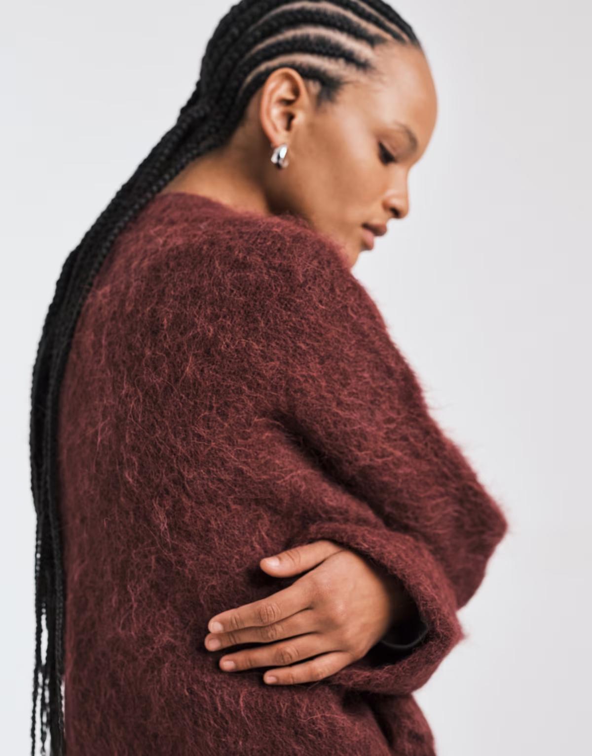 Machine wash according to instructions on care labelMain: 55% Alpaca, 24% Acrylic, 19% Nylon, 2% Elastane.This is ASOS DESIGN – your go-to for all the latest trends, no matter who you are, where you’re from and what you’re up to. Exclusive to ASOS, our universal brand is here for you, and comes in all our fit ranges: ASOS Curve, Tall, Petite and Maternity. Created by us, styled by you.Size & FitModel's height: 175cm / 5' 9''Still unsure what size to get? Check out our size guide.