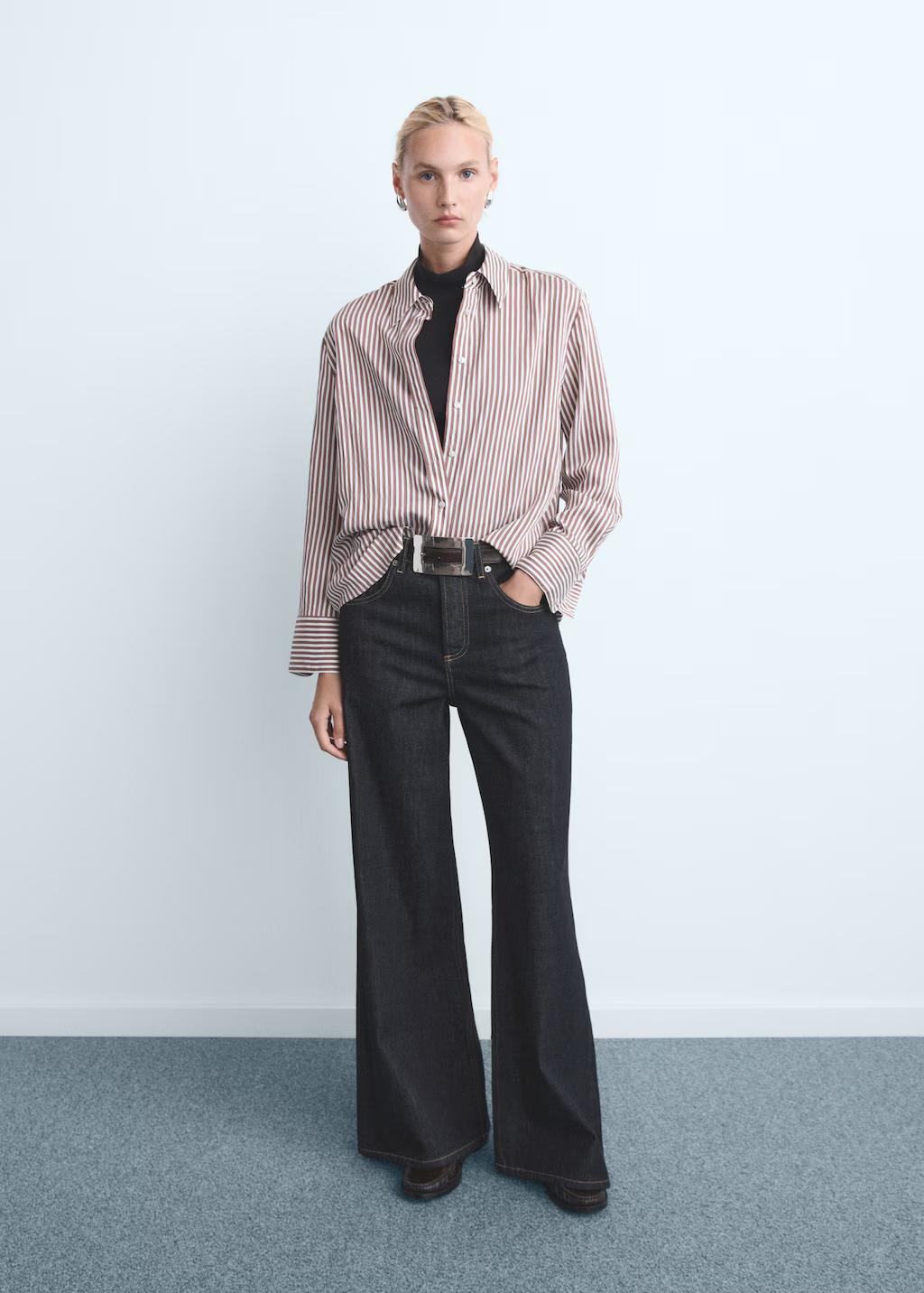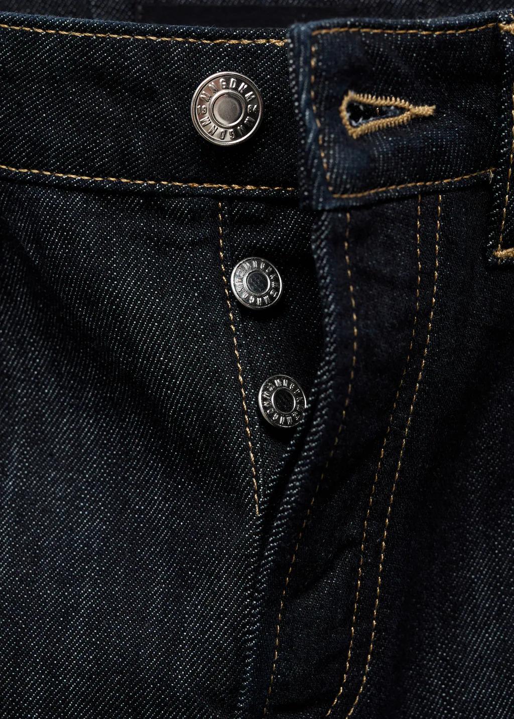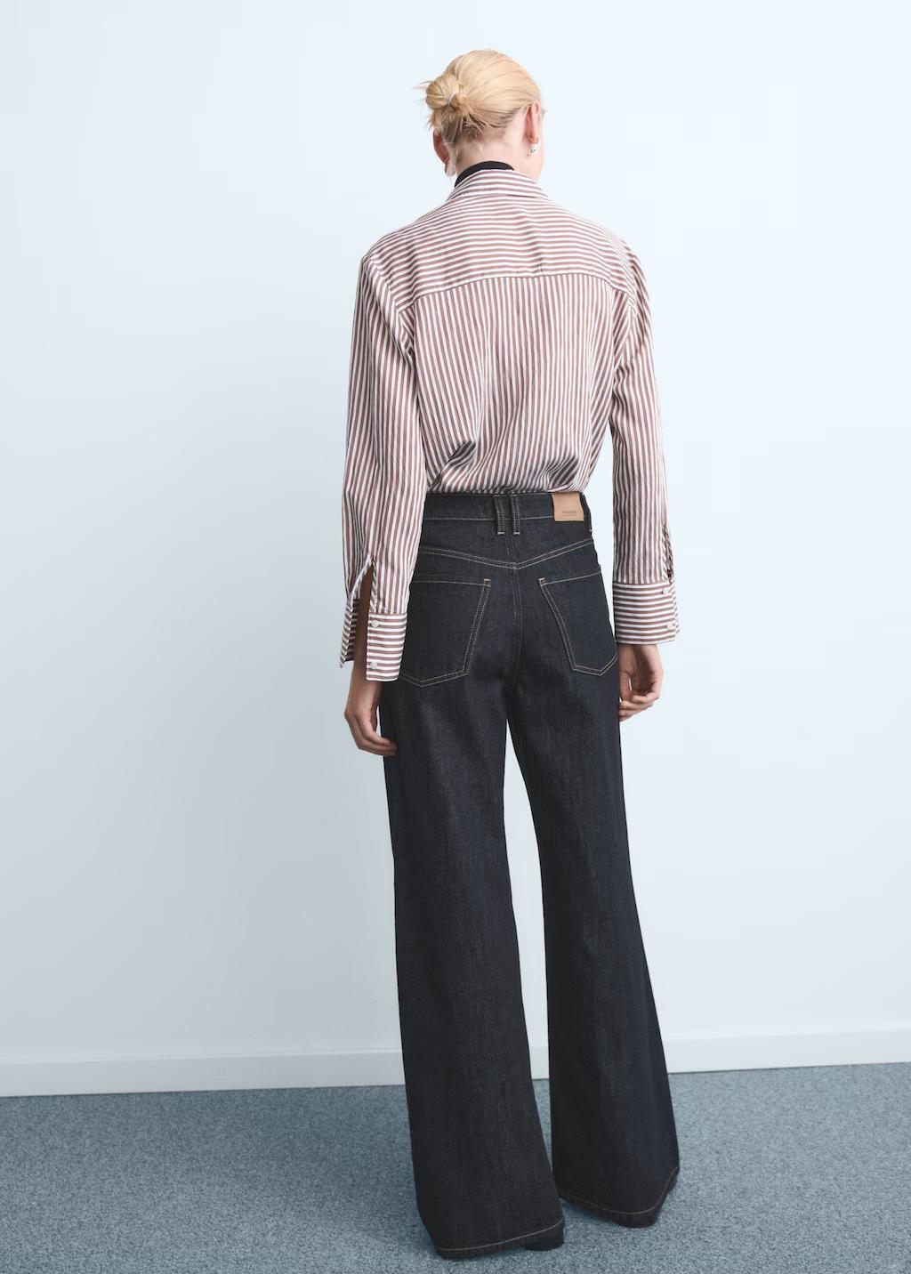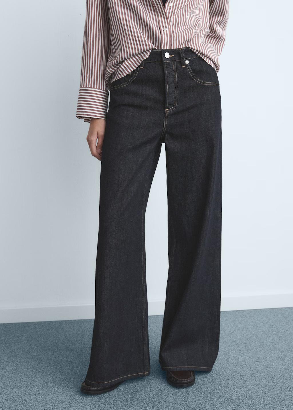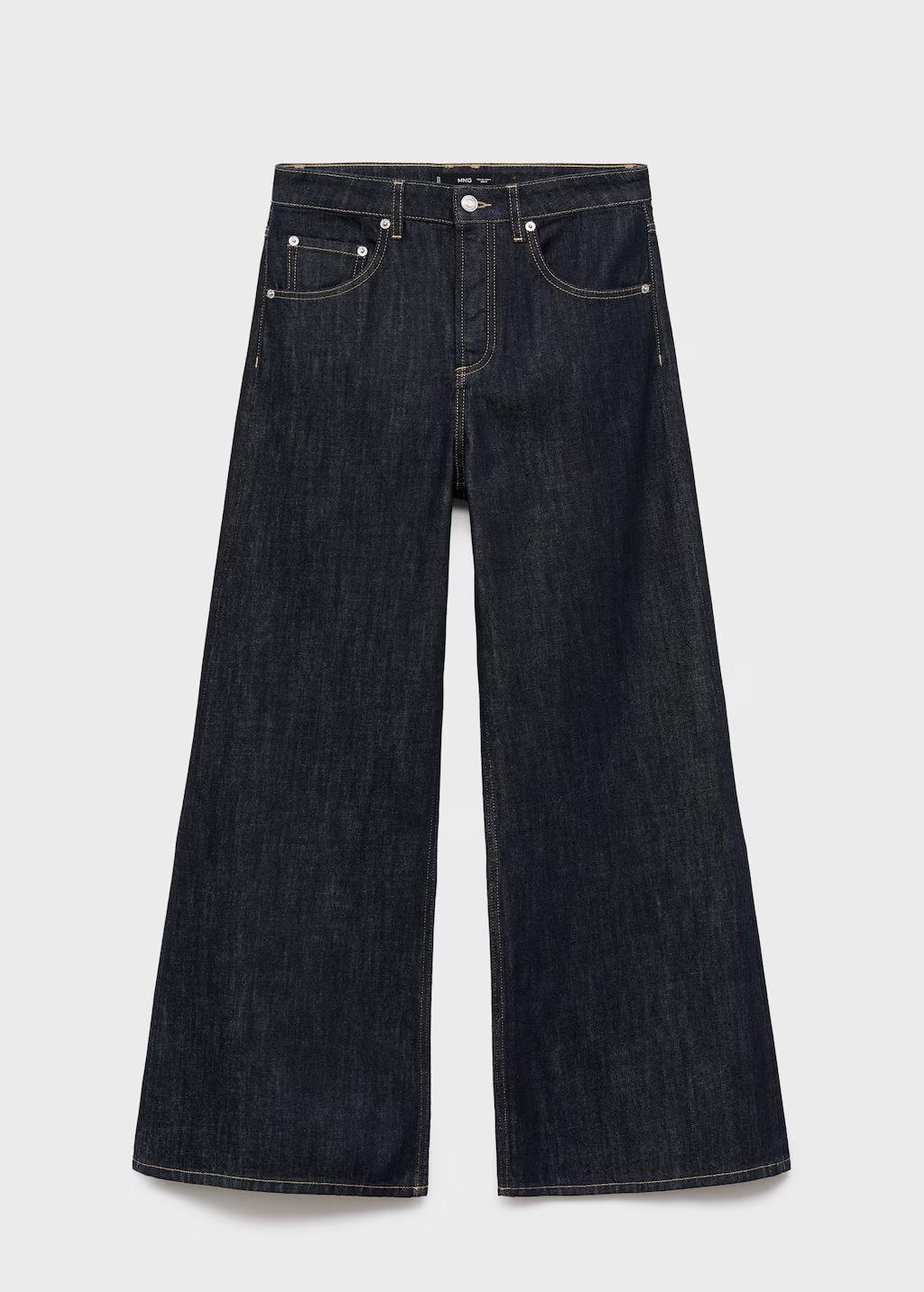 Tejido de algodón estilo tejano vaquero. Diseño largo. Diseño wide leg. Tiro medio. Trabillas. Cinco bolsillos. Cierre delantero con botones. Largo interior 82 cm