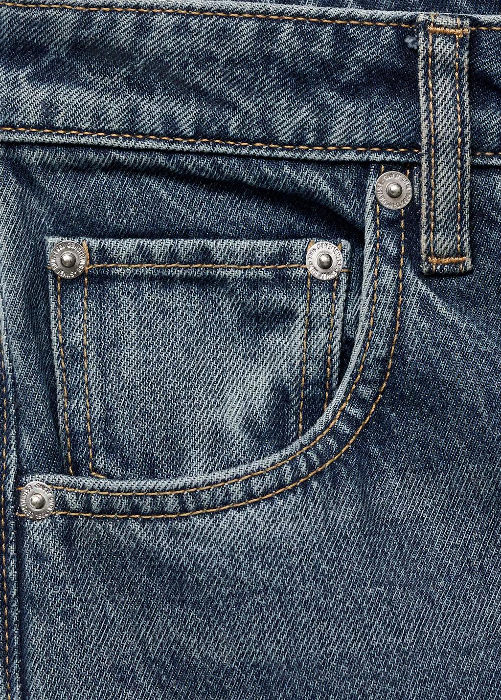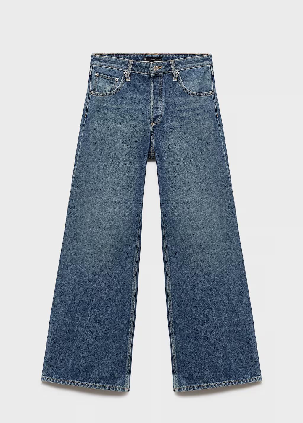 Tejido de algodón estilo tejano vaquero. Diseño largo. Diseño wide leg. Tiro alto. Trabillas. Cinco bolsillos. Cierre de botones