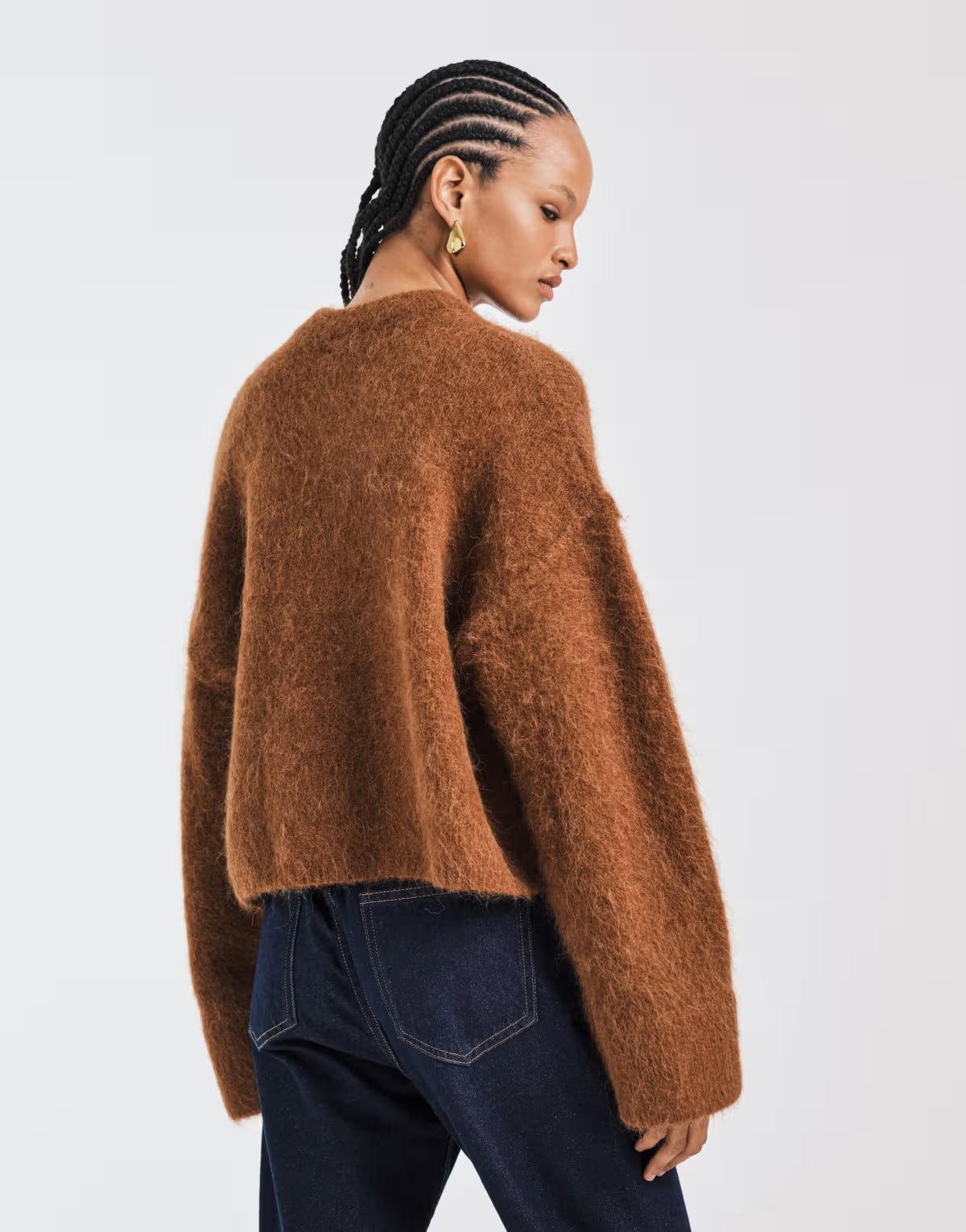 Machine wash according to instructions on care labelMain: 55% Alpaca, 24% Acrylic, 19% Nylon, 2% Elastane.This is ASOS DESIGN – your go-to for all the latest trends, no matter who you are, where you’re from and what you’re up to. Exclusive to ASOS, our universal brand is here for you, and comes in all our fit ranges: ASOS Curve, Tall, Petite and Maternity. Created by us, styled by you.Size & FitModel's height: 175cm / 5' 9''Still unsure what size to get? Check out our size guide.