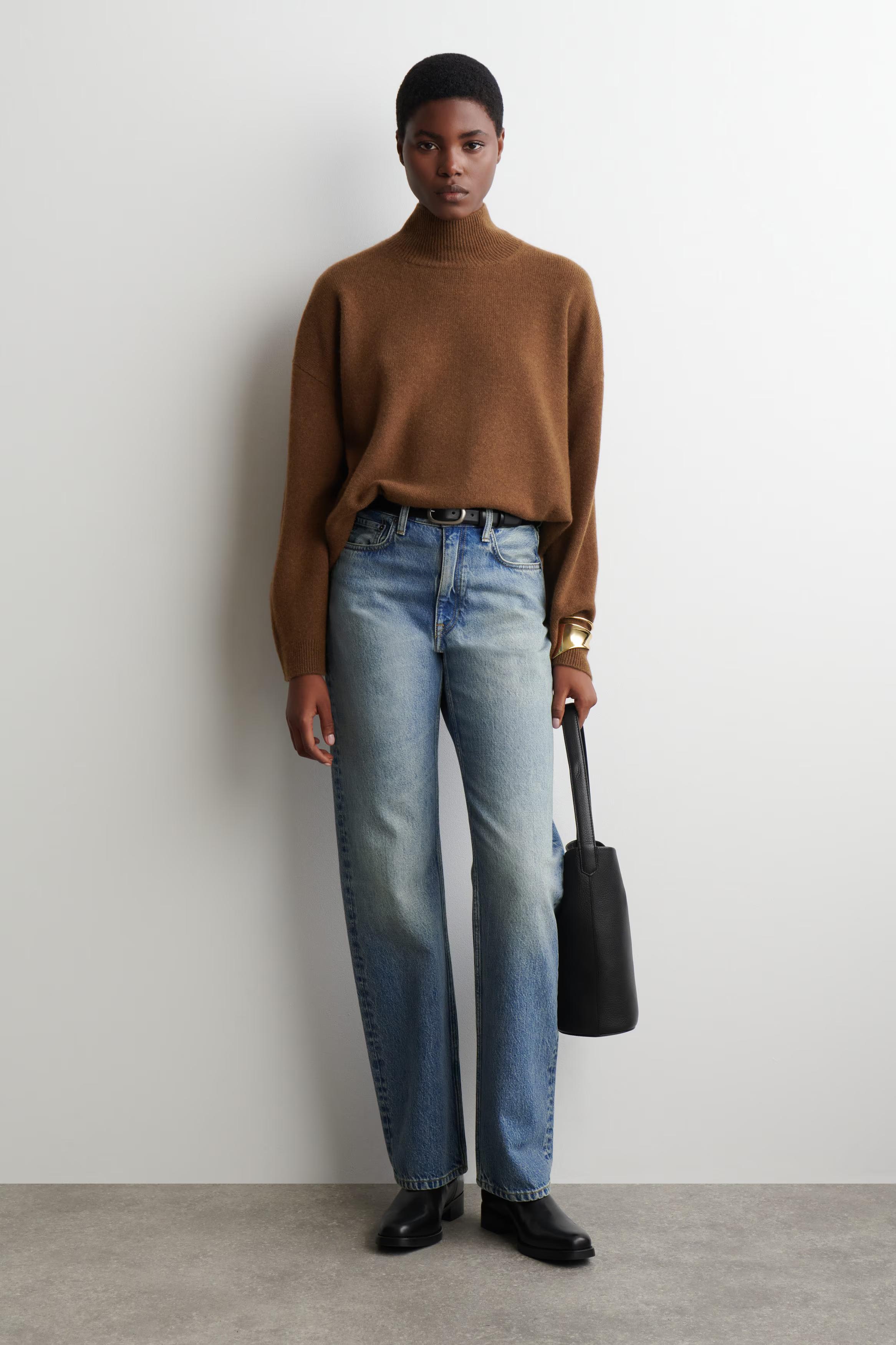 Luxuriously soft cashmere is a key tenet of the COS wardrobe. Rendered in a rust-brown tone, this jumper is crafted from premium Good Cashmere Standard\u0026reg; yarn and designed with a funnel neckline, dropped shoulders and chunky ribbed trims.\u0026nbsp;Relaxed fitThe Good Cashmere Standard\u0026reg; is owned by Aid by Trade Foundation (AbTF) and sets out requirements on animal welfare, land management and herders' working conditions\u0026nbsp;\u0026nbsp;Shell: 100% GCS Cashmere. Excluding trims / Machine wash\u0026nbsp;Back length of size S is 63cm / Model wears a size S