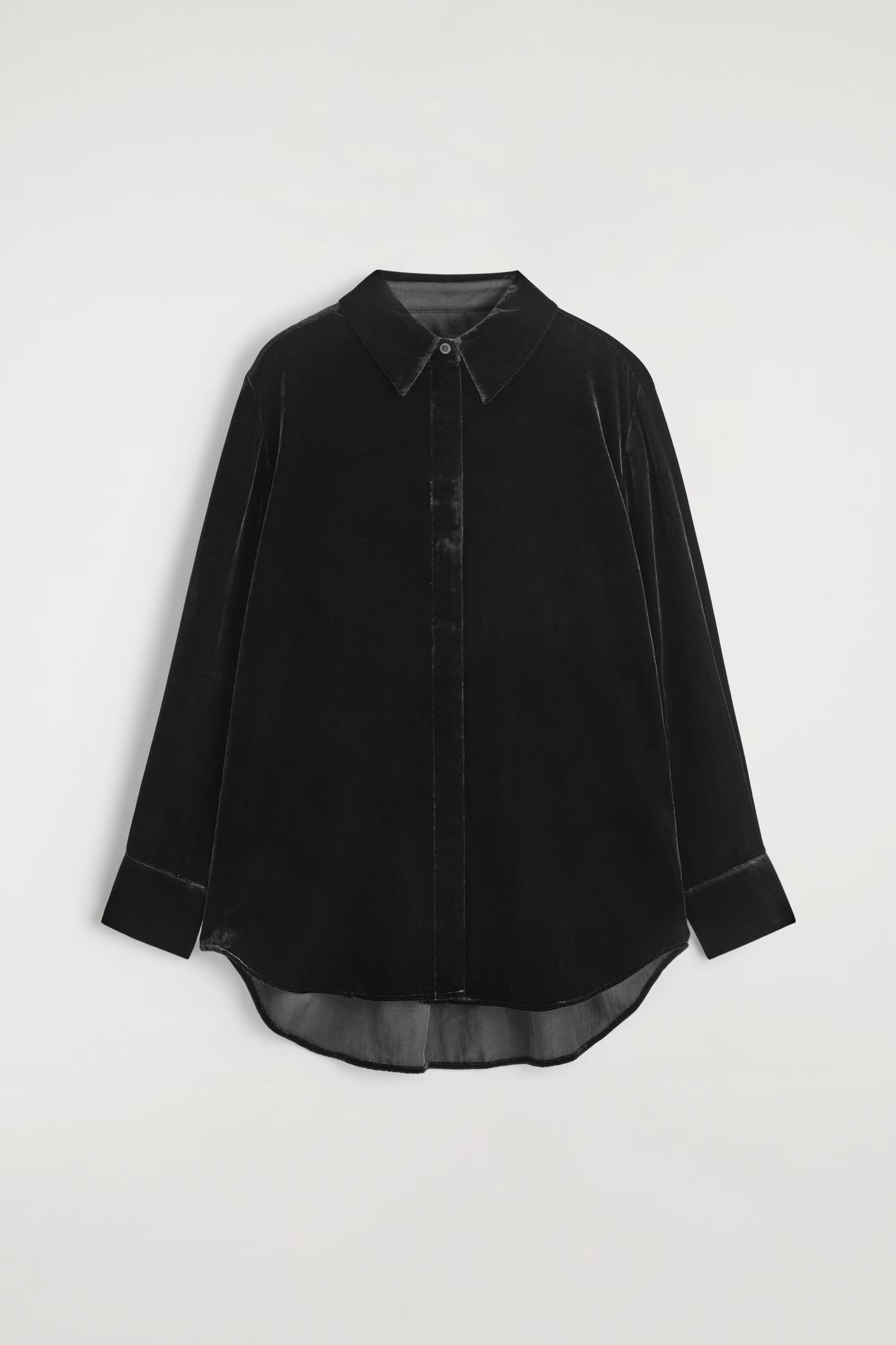 A prelude to party season, this shirt is crafted from luxuriously tactile velvet in a rich chocolate tone. It's cut in a relaxed silhouette and designed with a pointed collar, concealed buttons and a pleat at the back. Style it with the\u0026nbsp;coordinating trousers for maximum impact.\u0026nbsp;Relaxed fitButton closureRecycled polyamide is polyamide made from textile waste in production\u0026nbsp;Shell: 77% Viscose, 22% Recycled polyamide (Recycled nylon). Excluding trims / Dry clean\u0026nbsp;Back length of size EU 36 is 75.1cm / Model wears a size EU 36