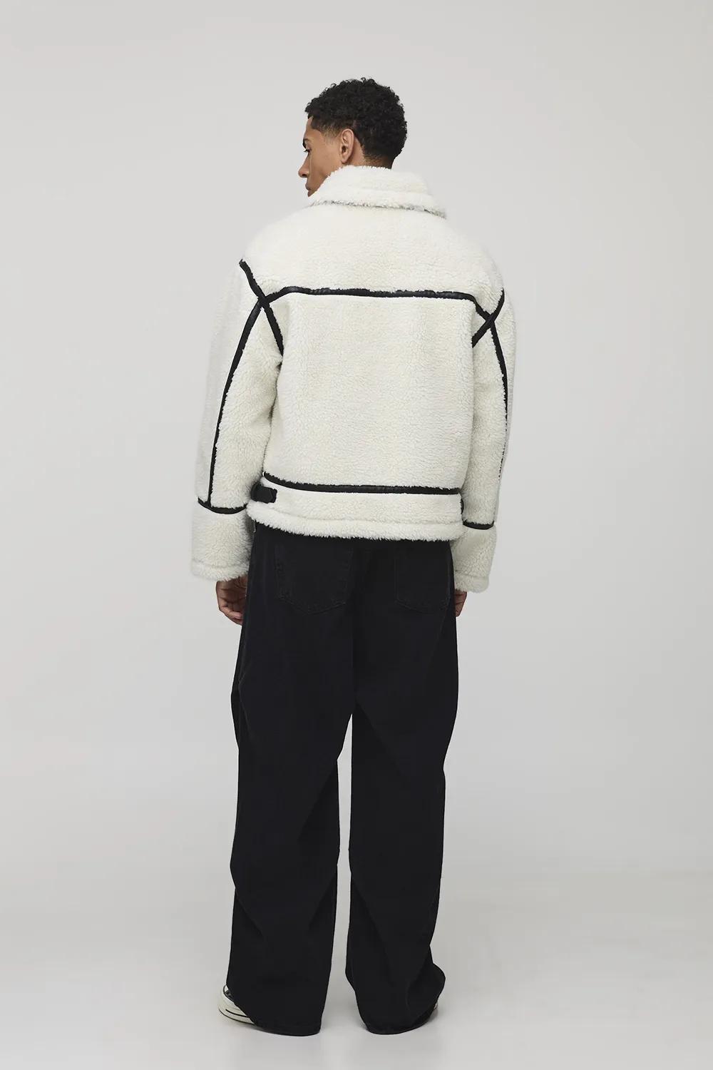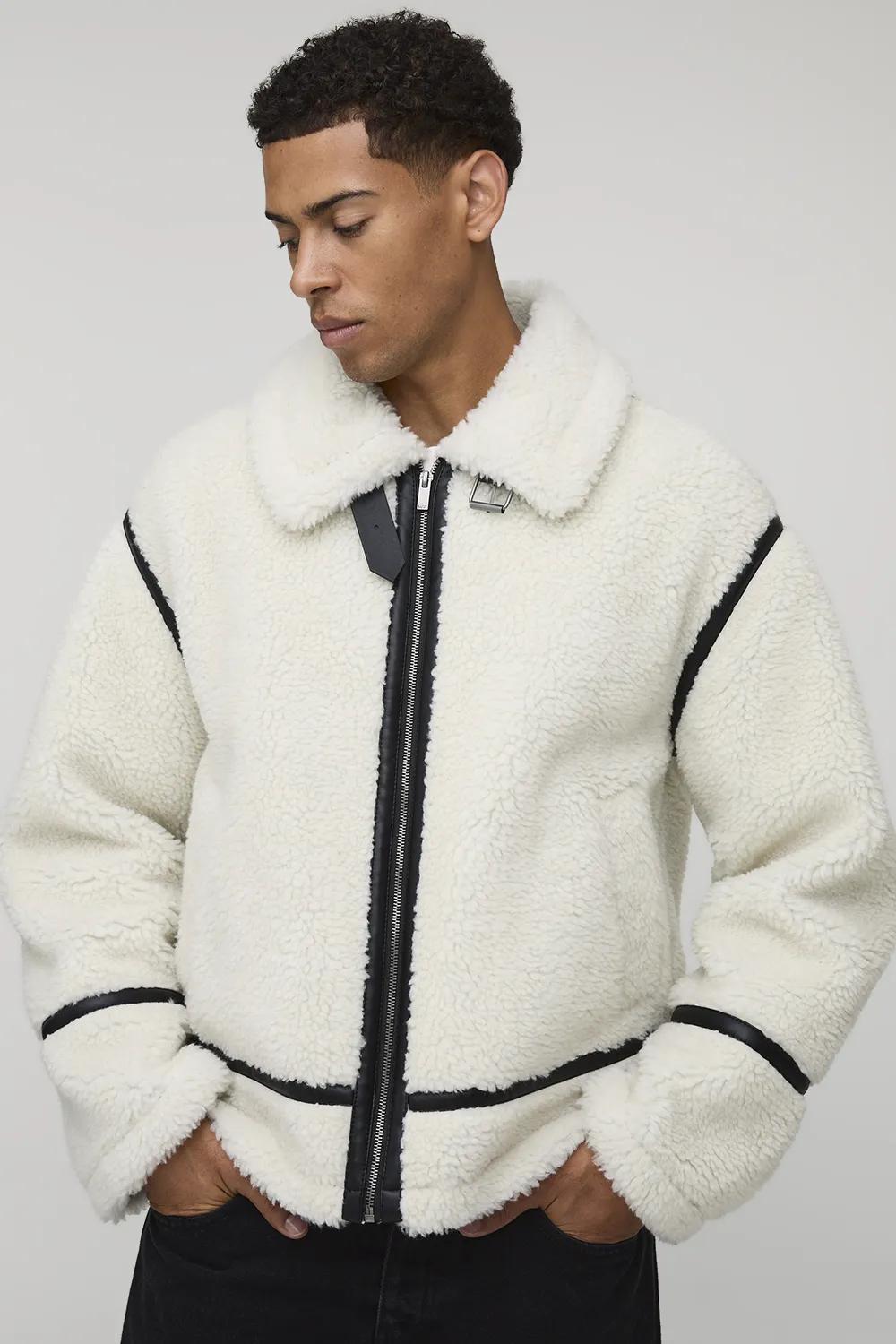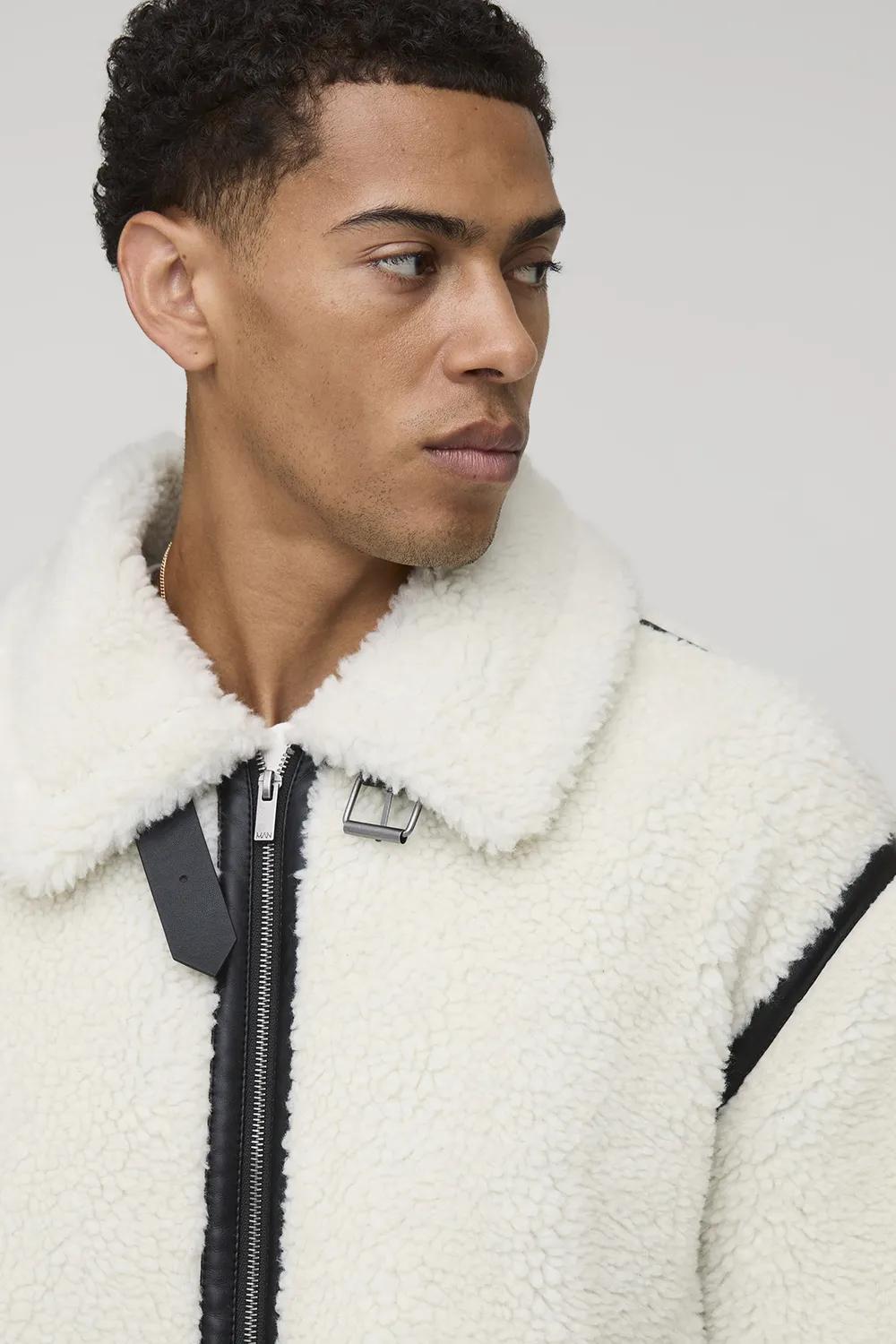Jackets & Coats | Oversized Fit Borg PU Seam Aviator Jacket | boohooMAN