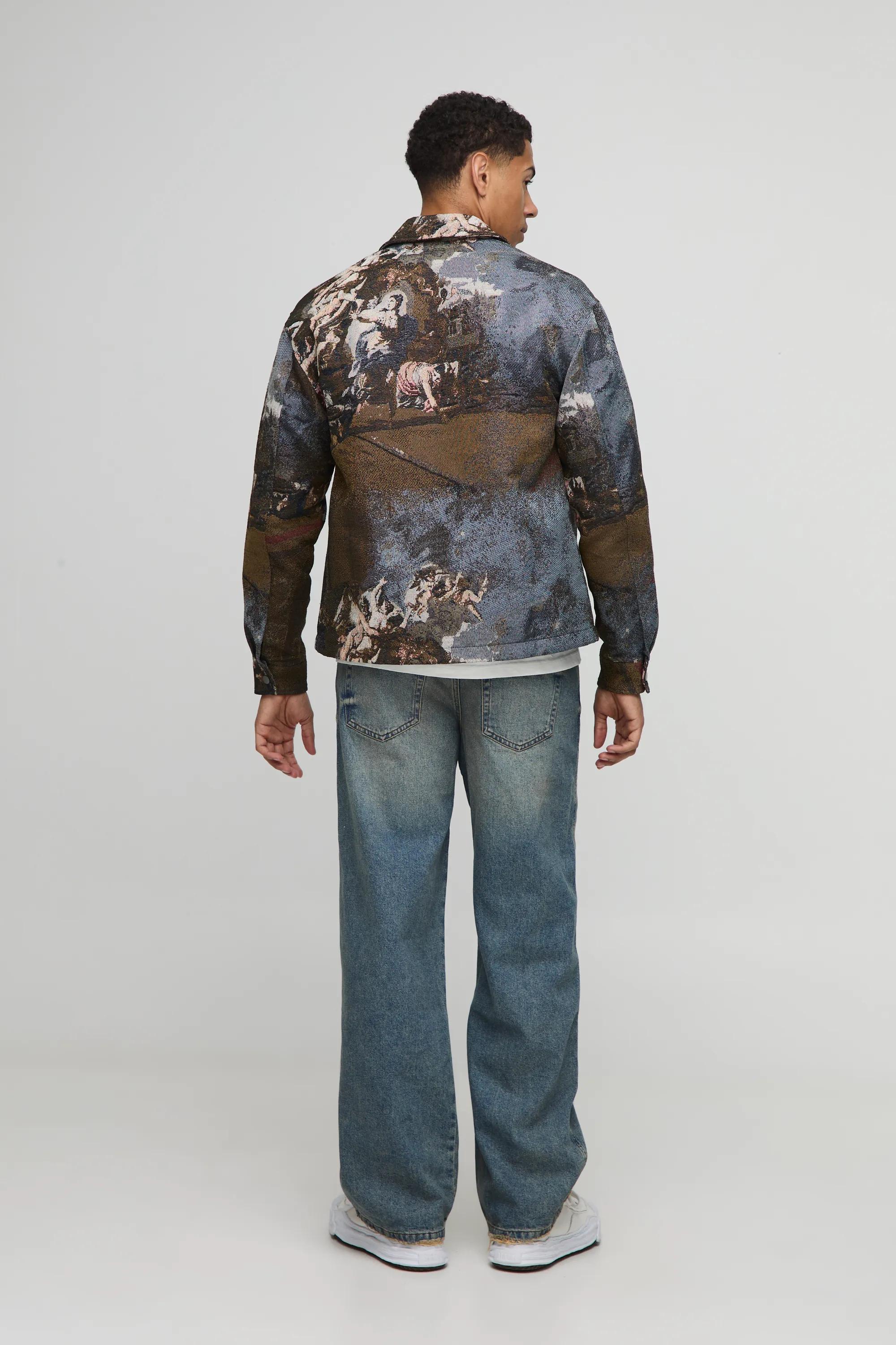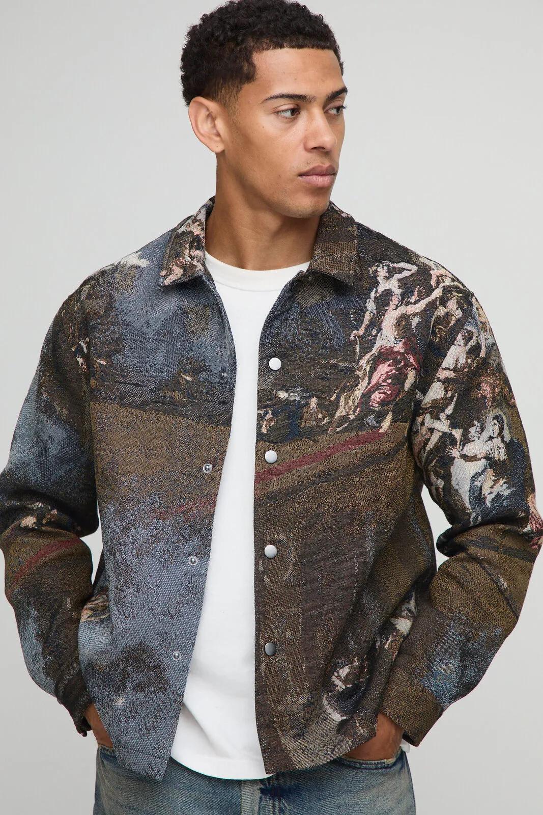 Shirts | Regular Renaissance Angelic Tapestry Long Sleeve Overshirt | boohooMAN