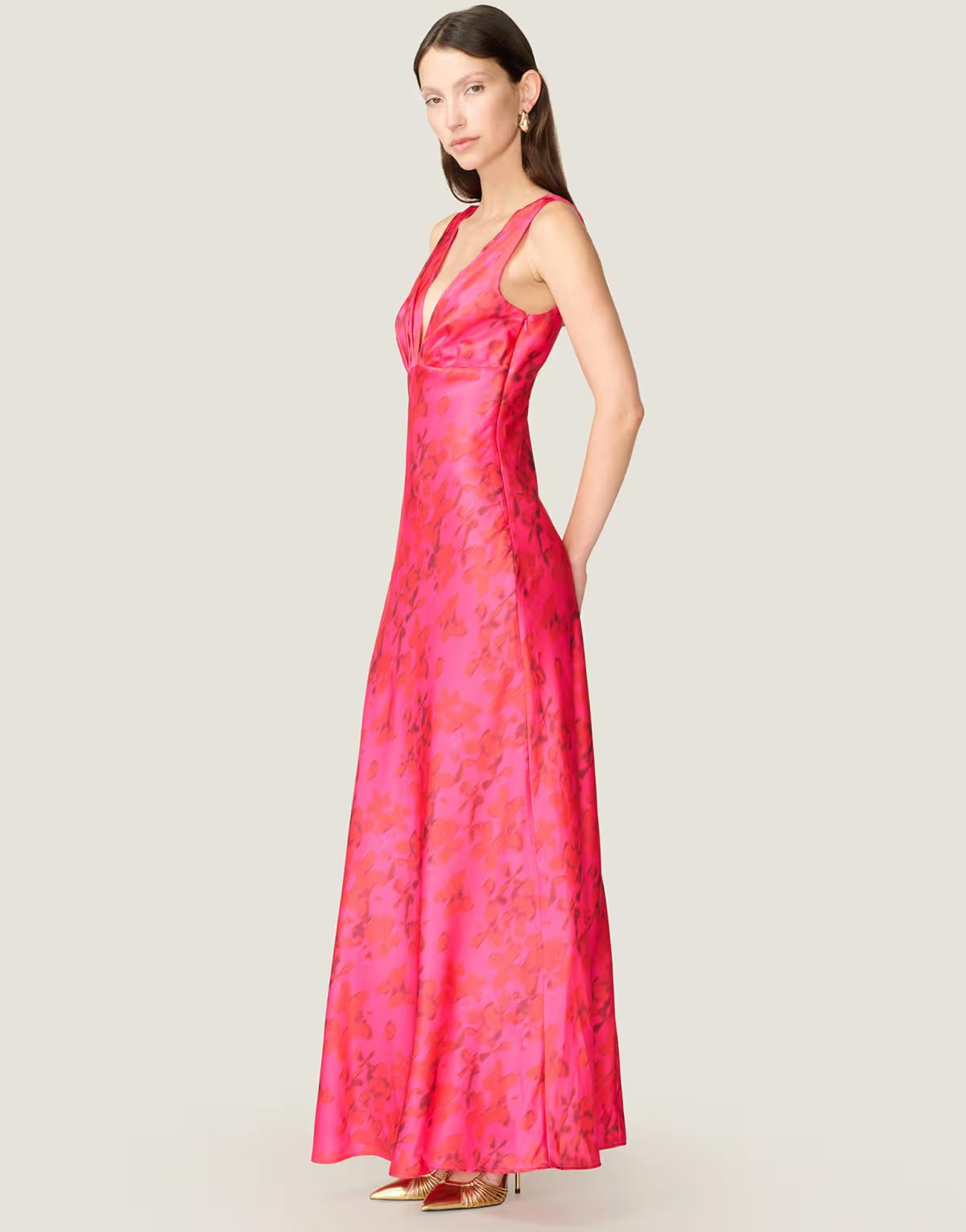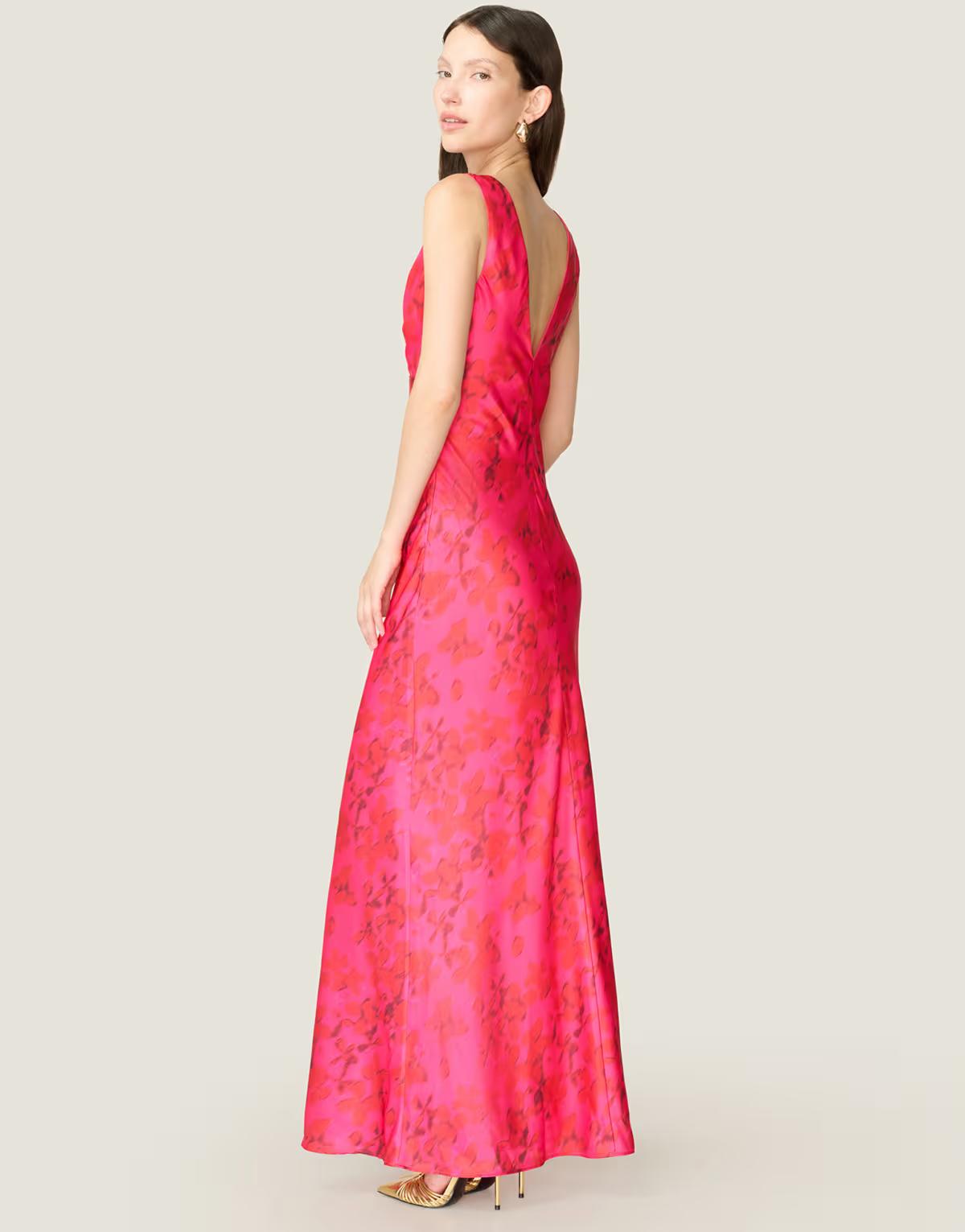 Omnes Dresses casey maxi v-neck dress in red floral print in red