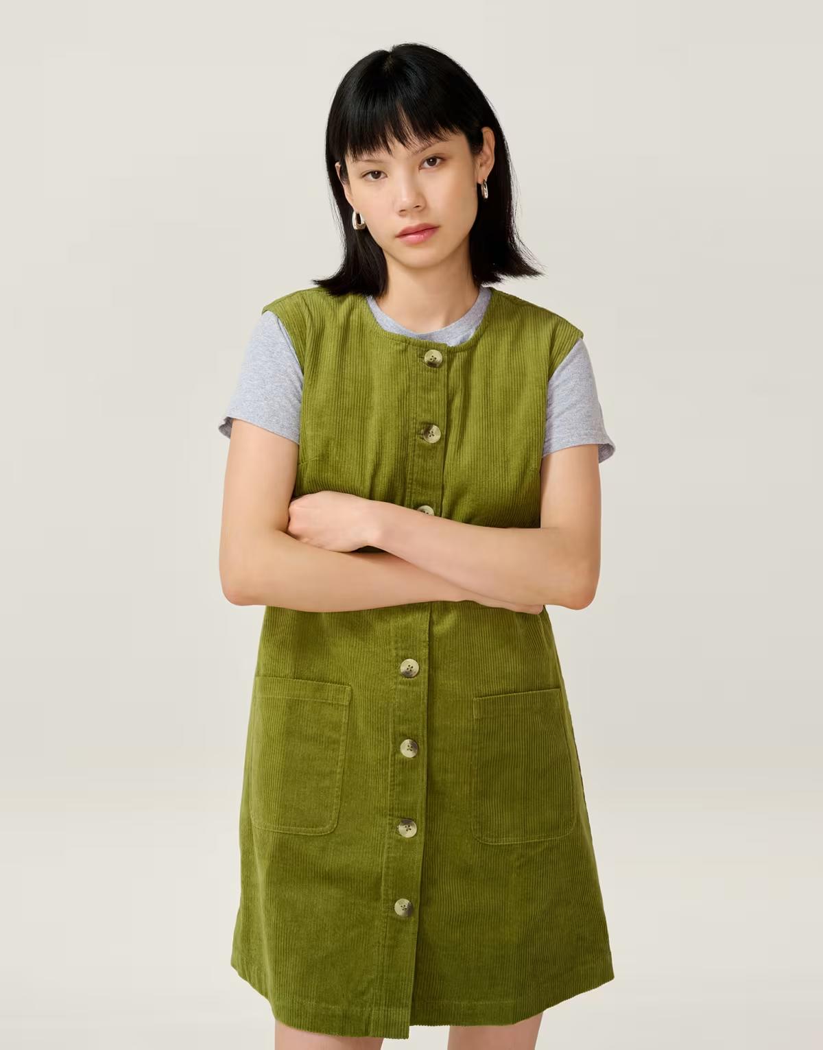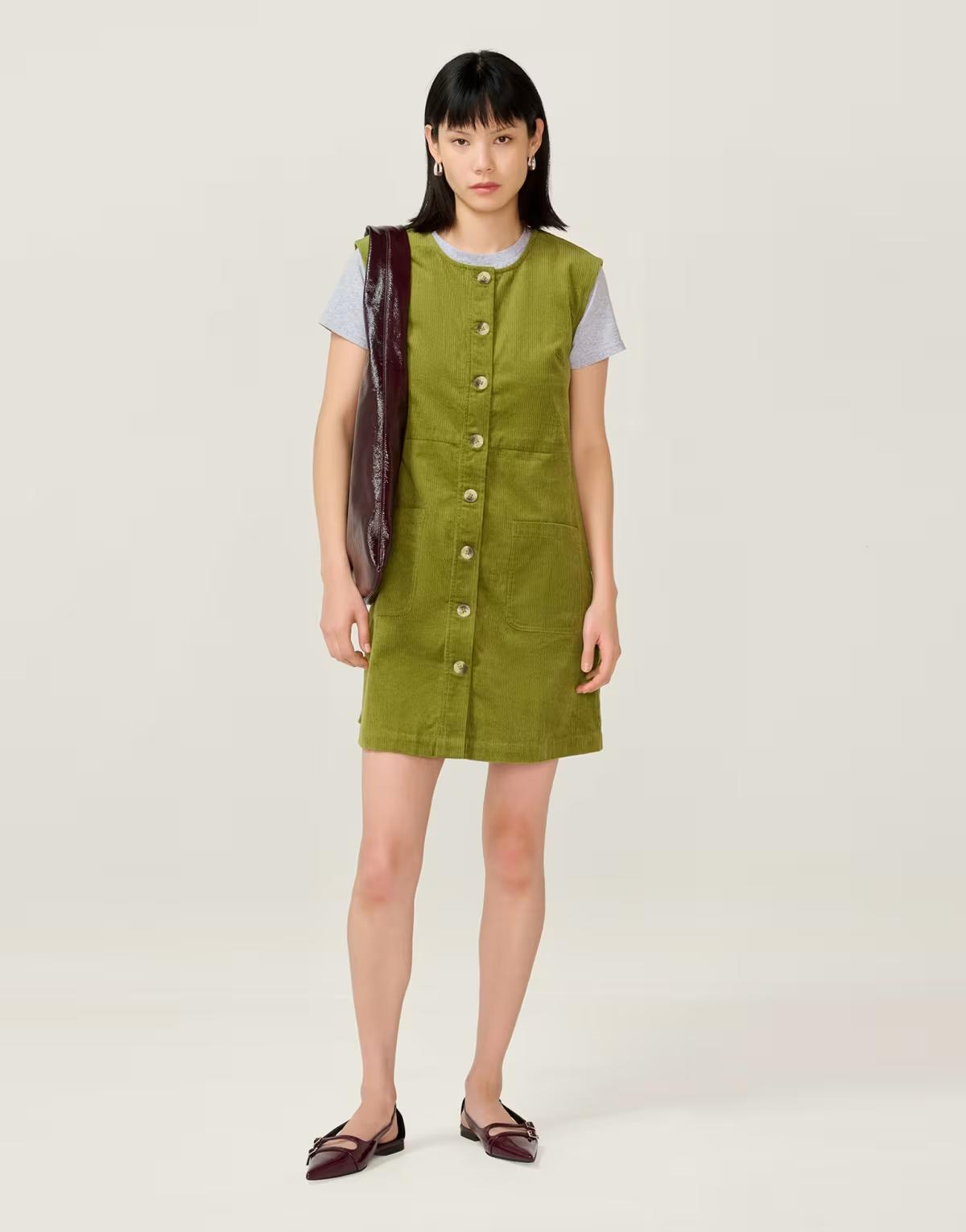 Omnes Dresses bunni mini sleeveless a-line cord dress in green