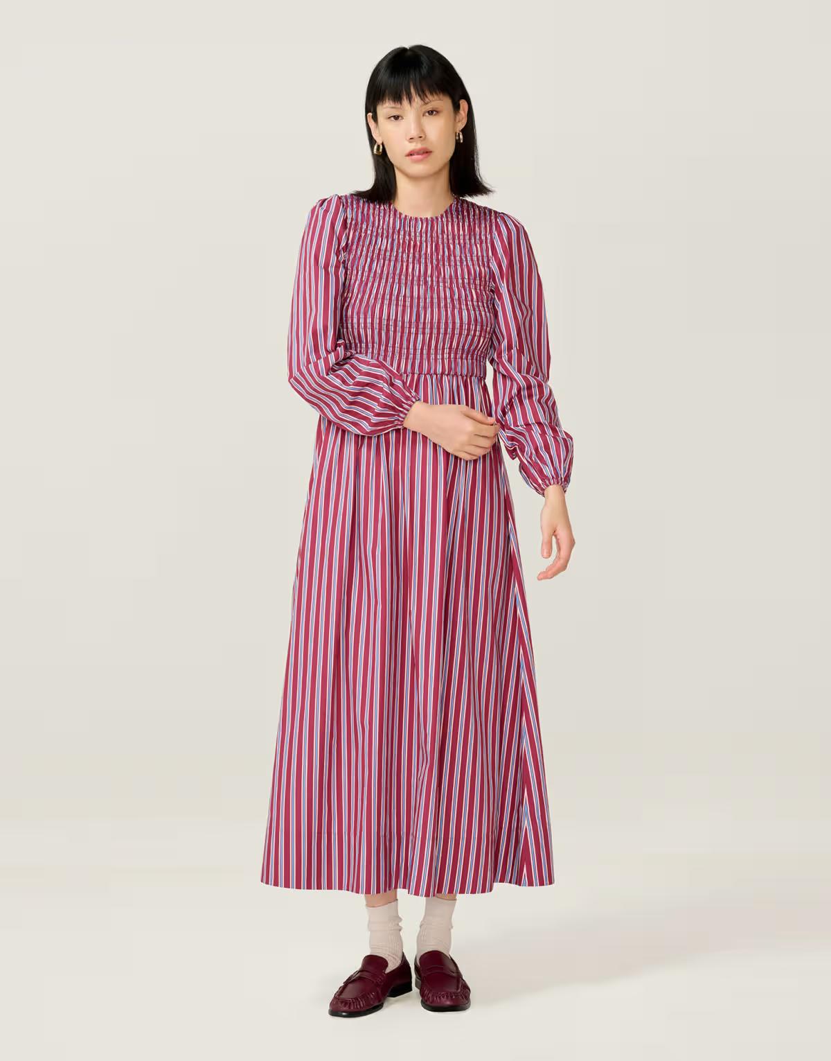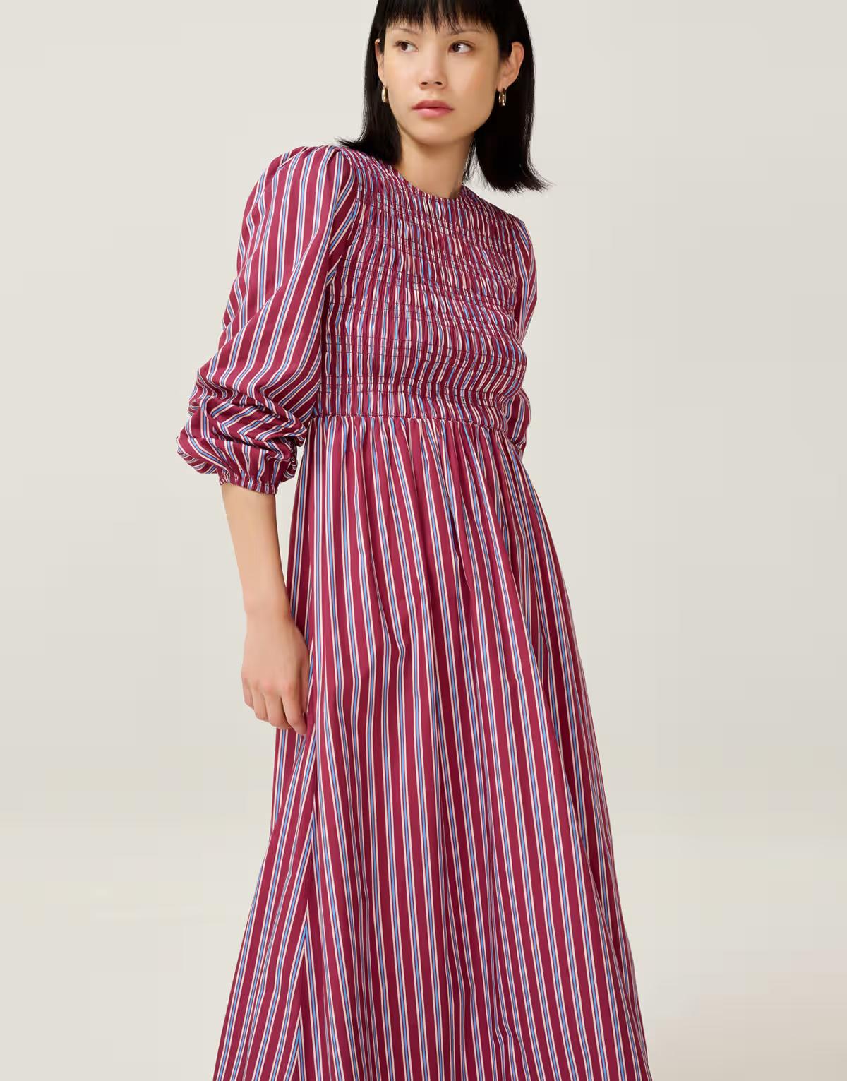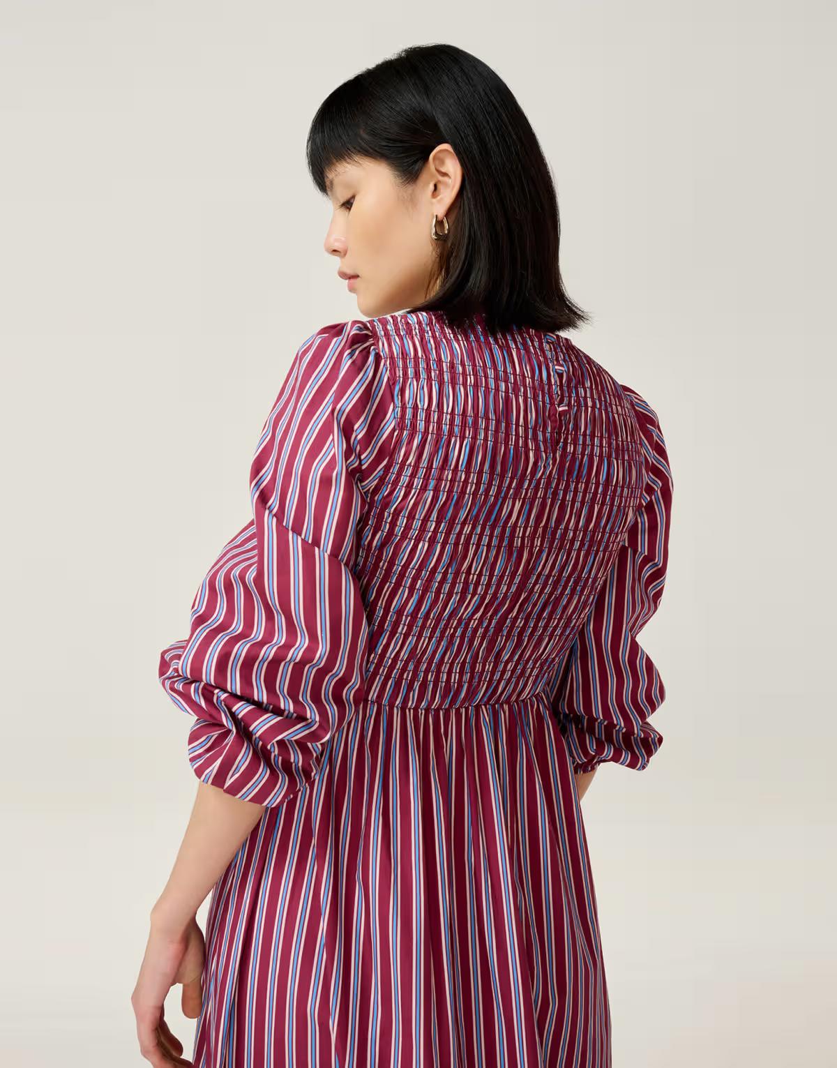 Omnes Dresses saint stripe baloon sleeve midi dress in blue and brown