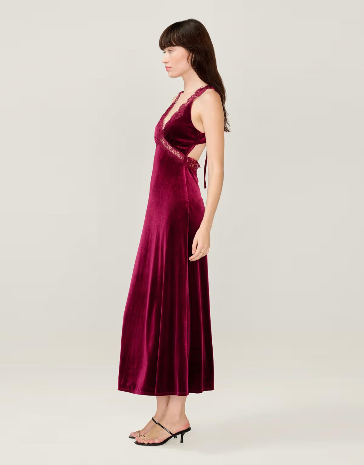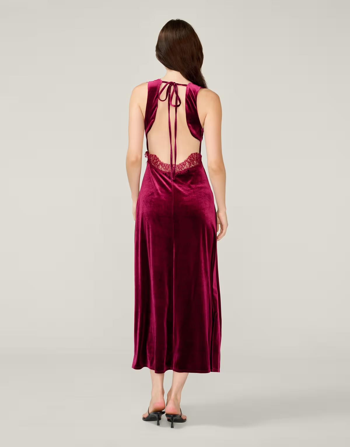 Omnes Dresses aurelia lace detailed maxi dress in red velvet