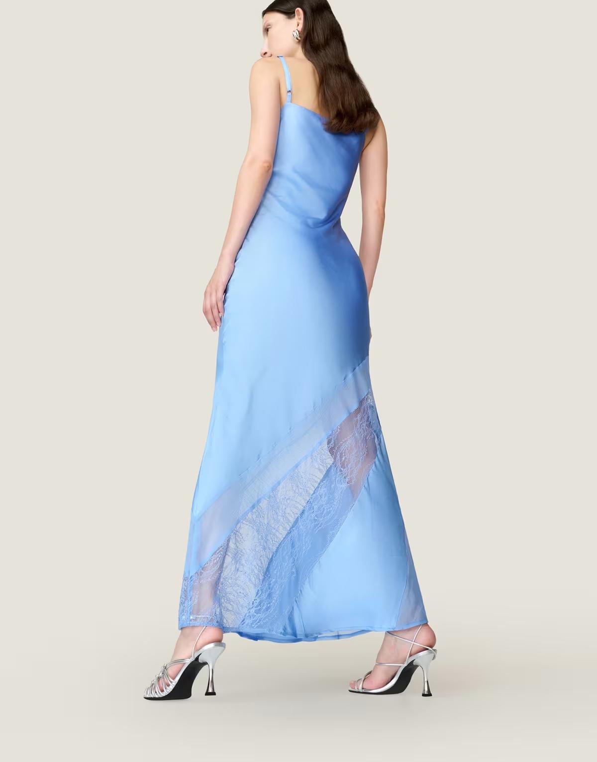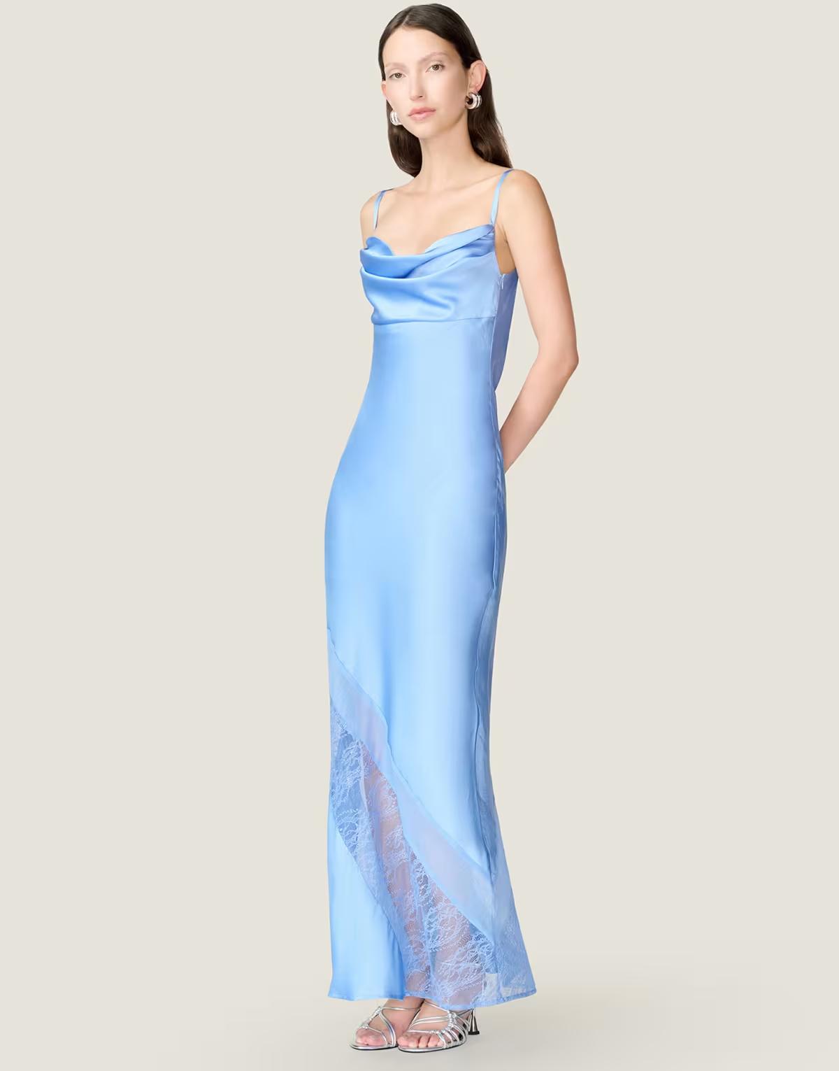Omnes Dresses wendy midi satin dress with lace detail in blue
