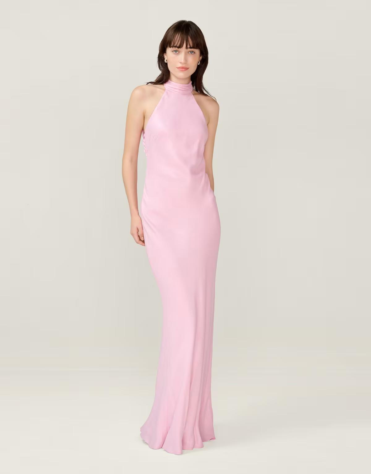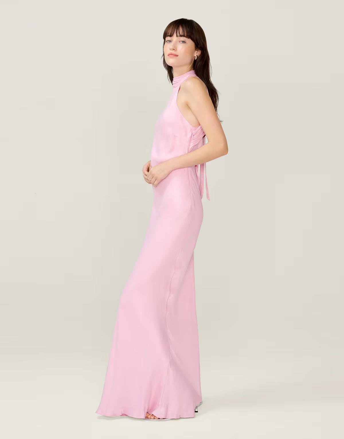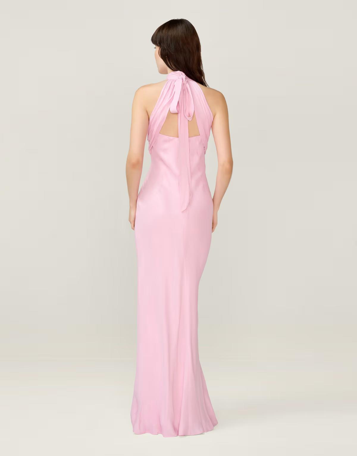 Omnes Dresses milos maxi halter neckline dress in pink with back bow detail in pink
