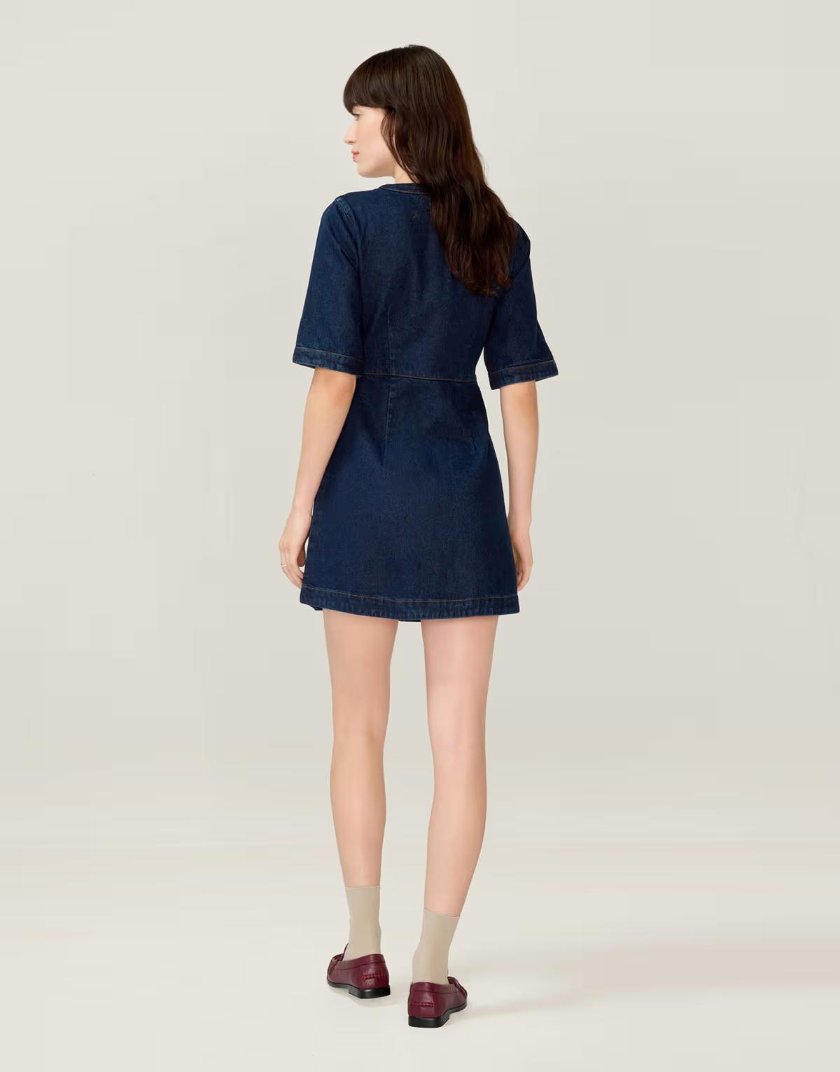 Omnes Dresses adia mini dress in mid-wash denim in blue