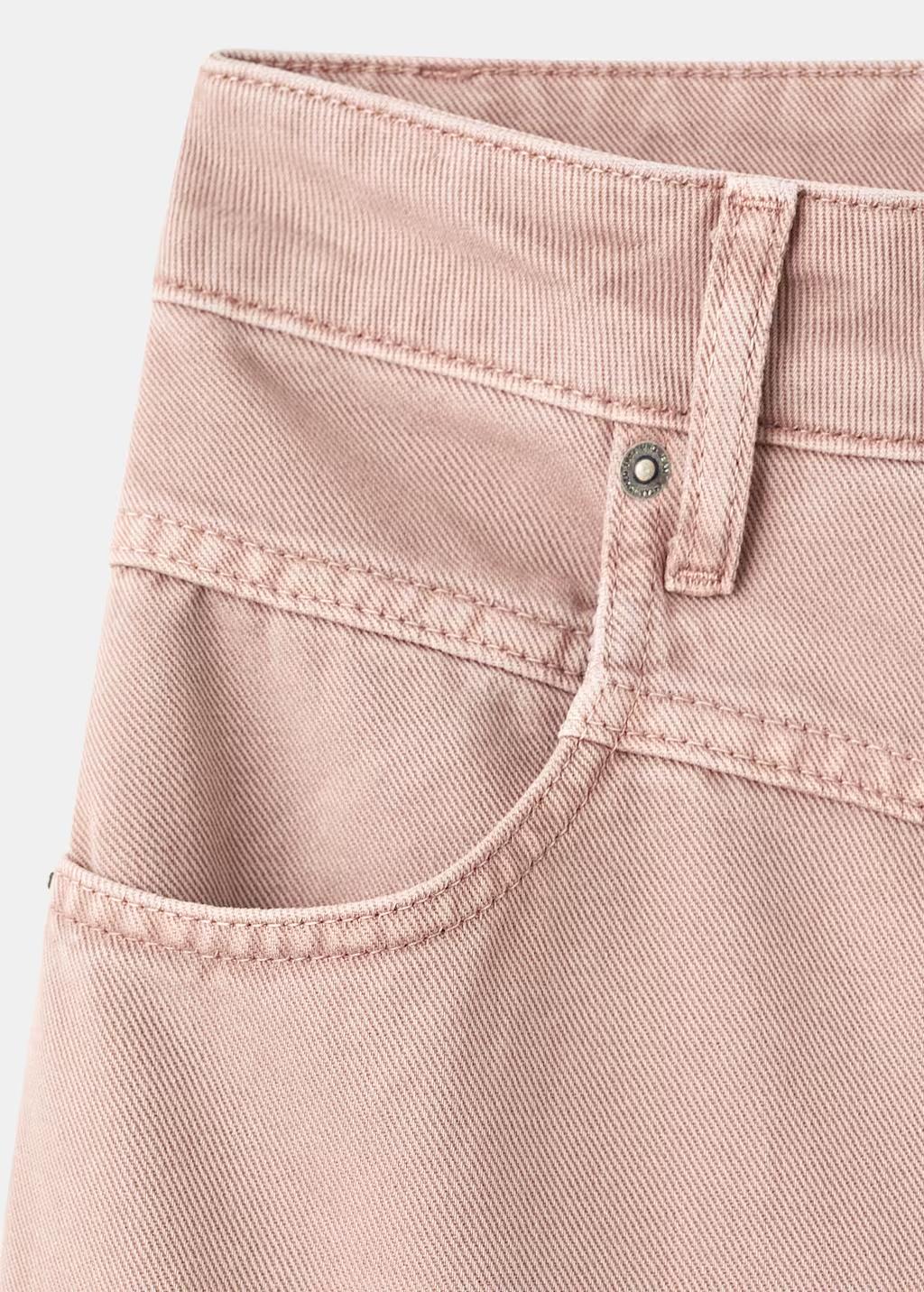Tejido de algodón estilo tejano vaquero. Diseño largo. Diseño wide leg. Diseño loose. Tiro medio. Trabillas. Cinco bolsillos. Detalle de costura en la cadera. Cierre delantero de cremallera y botón. Exclusivo Online
