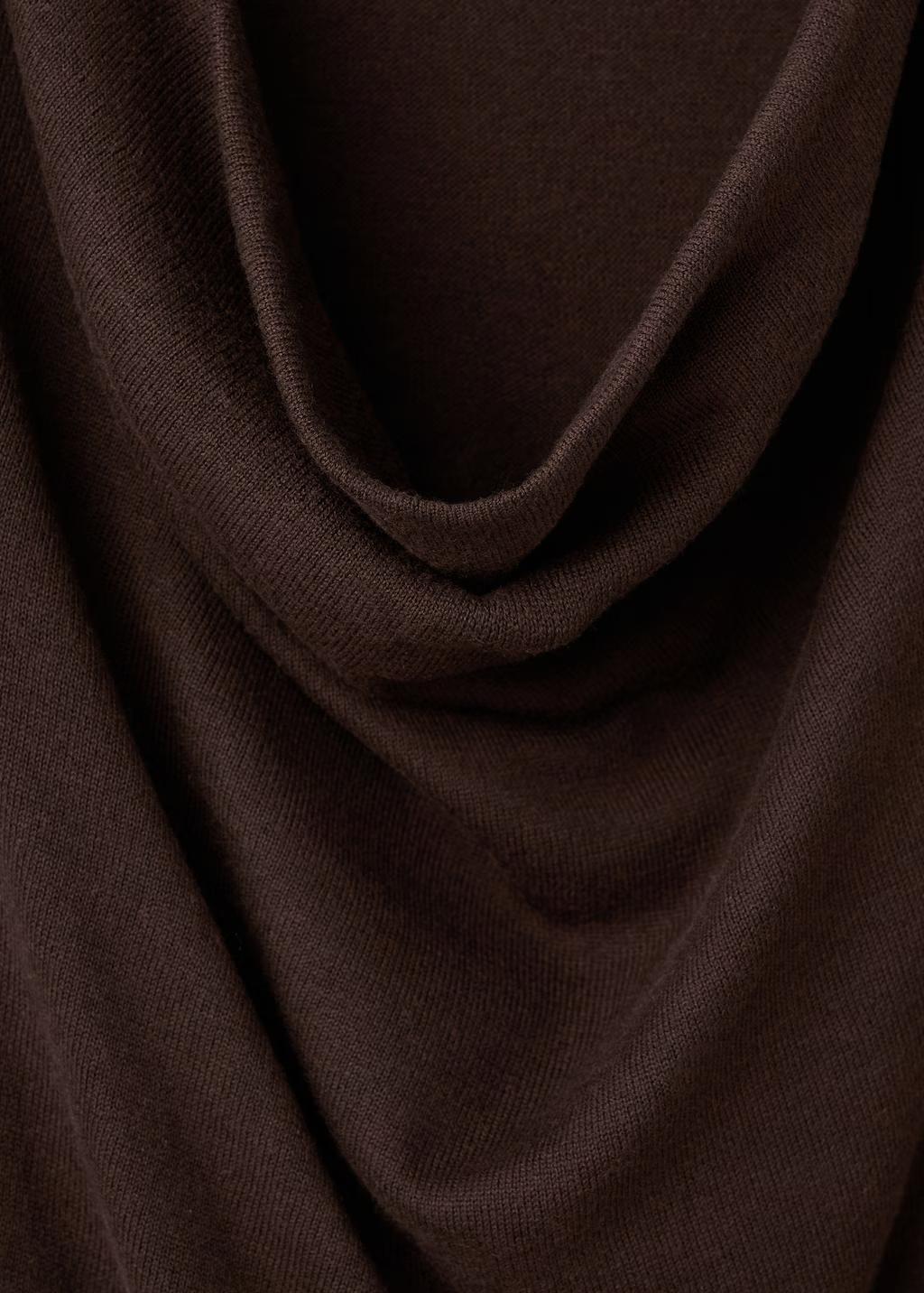 Tejido de punto fino. Diseño recto. Cuello drapeado. Manga larga