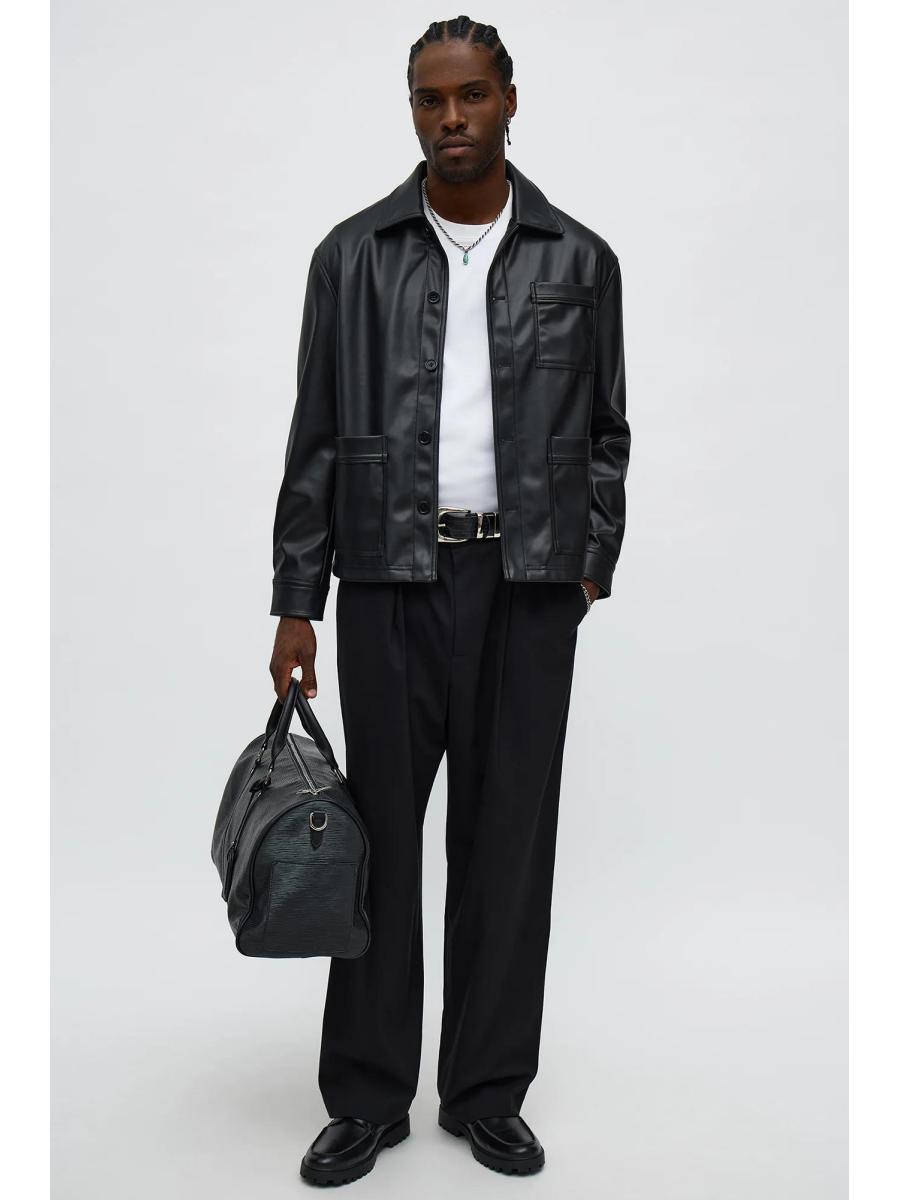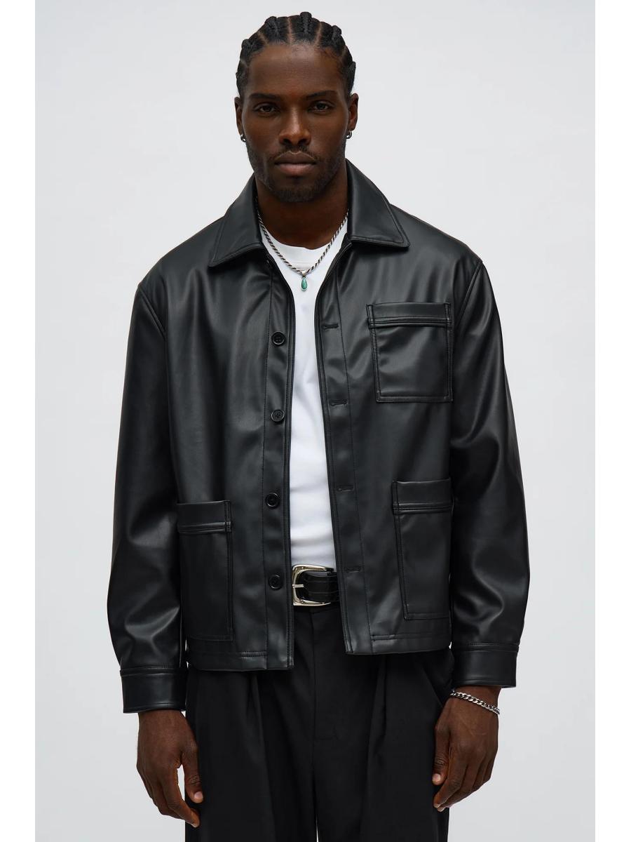 Relaxed Faux Leather Chore Jacket - Black | Fashion Nova