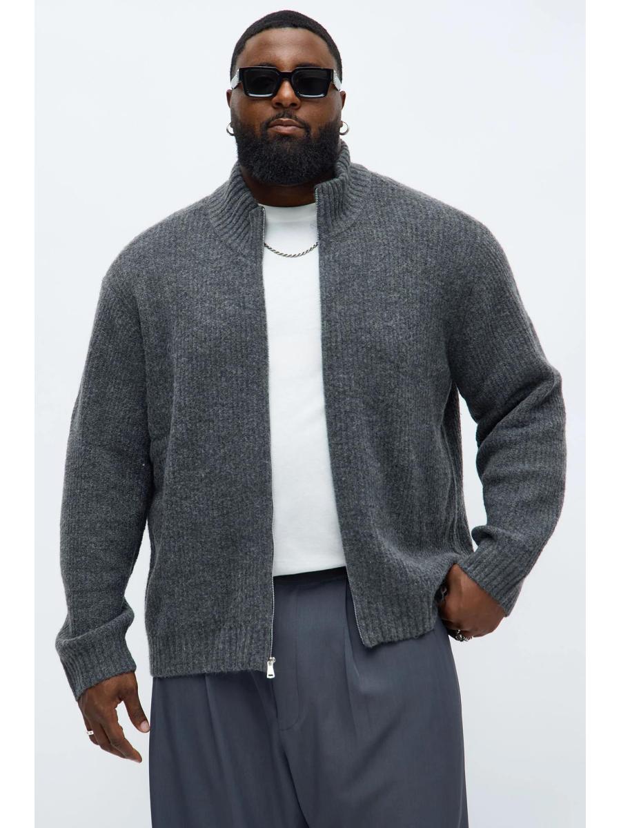 Oversized Willow Ribbed Zip Up Sweater - Light Grey | Fashion Nova