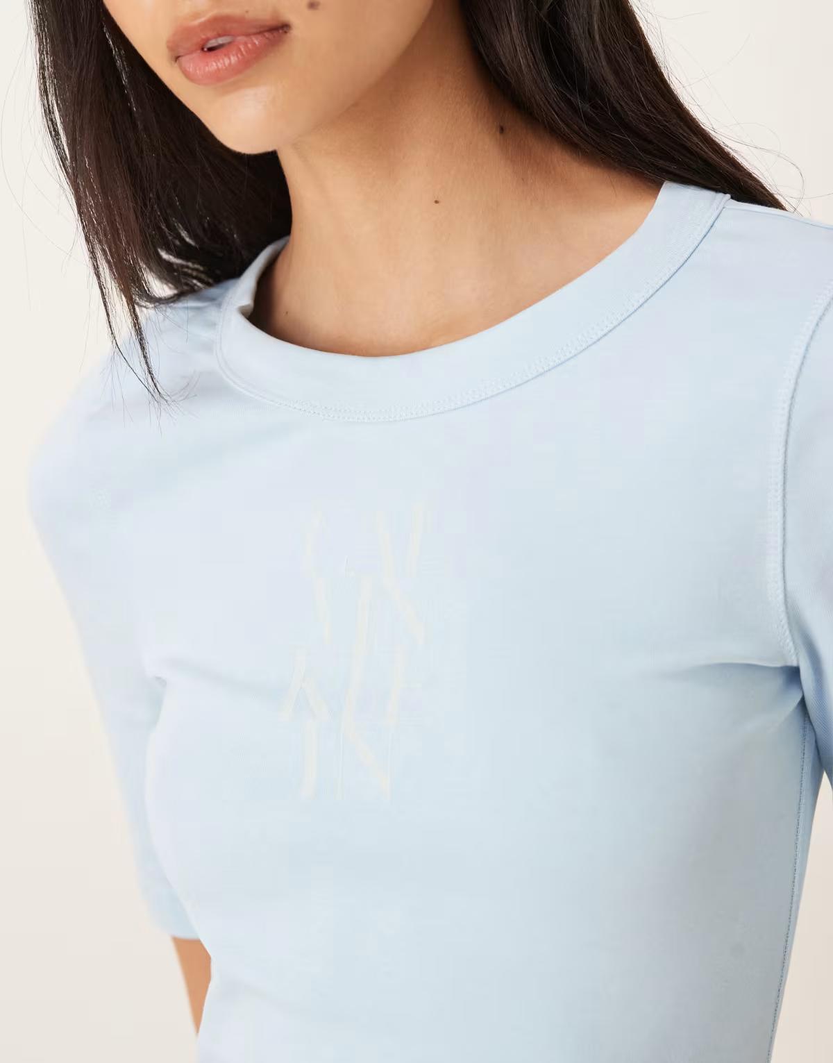 Calvin Klein Jeans short sleeve logo rib t-shirt In light blue