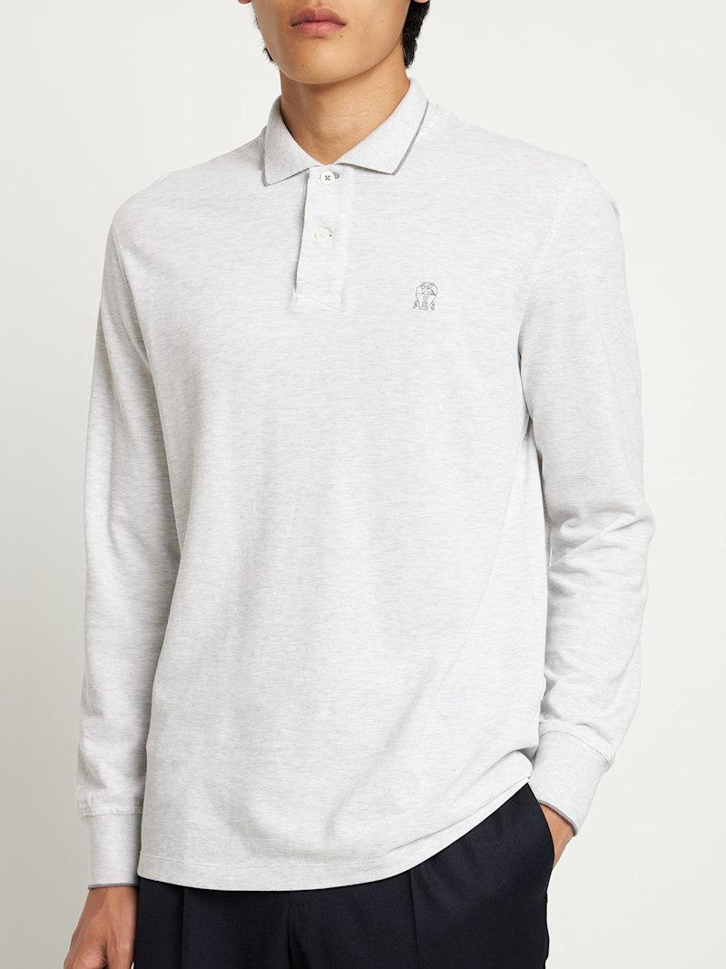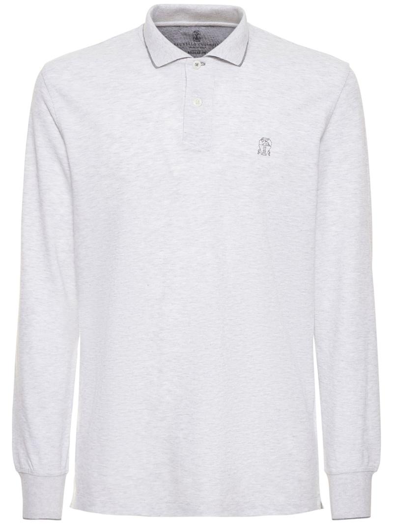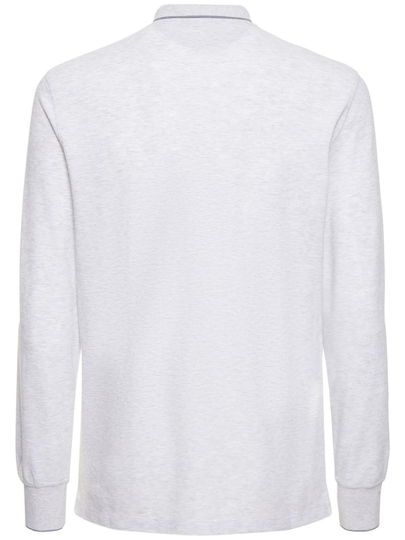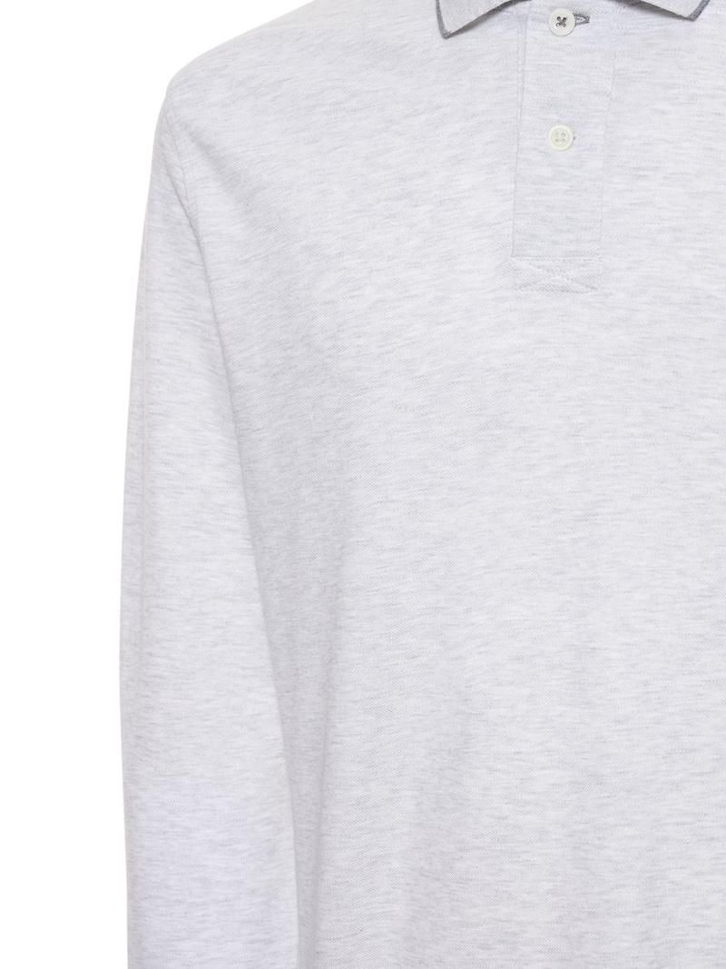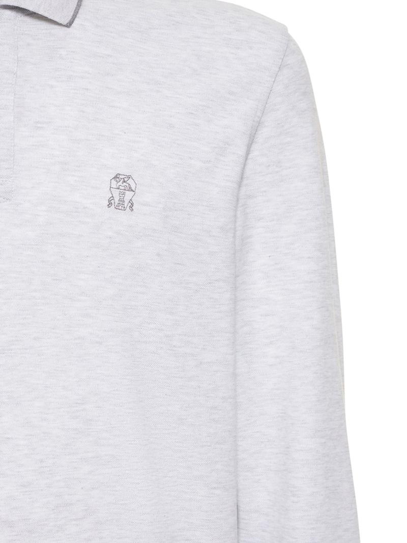 棉质POLO领T恤 - 灰色 - 男士 - Brunello Cucinelli - 正面半开襟纽扣