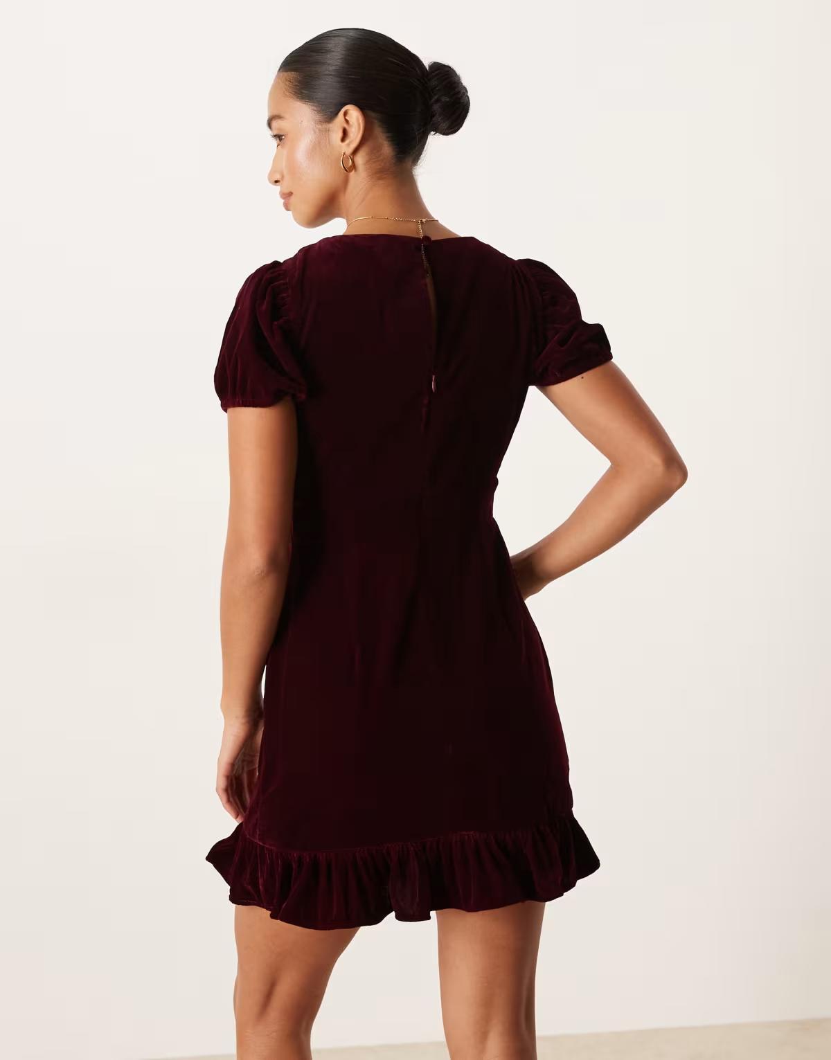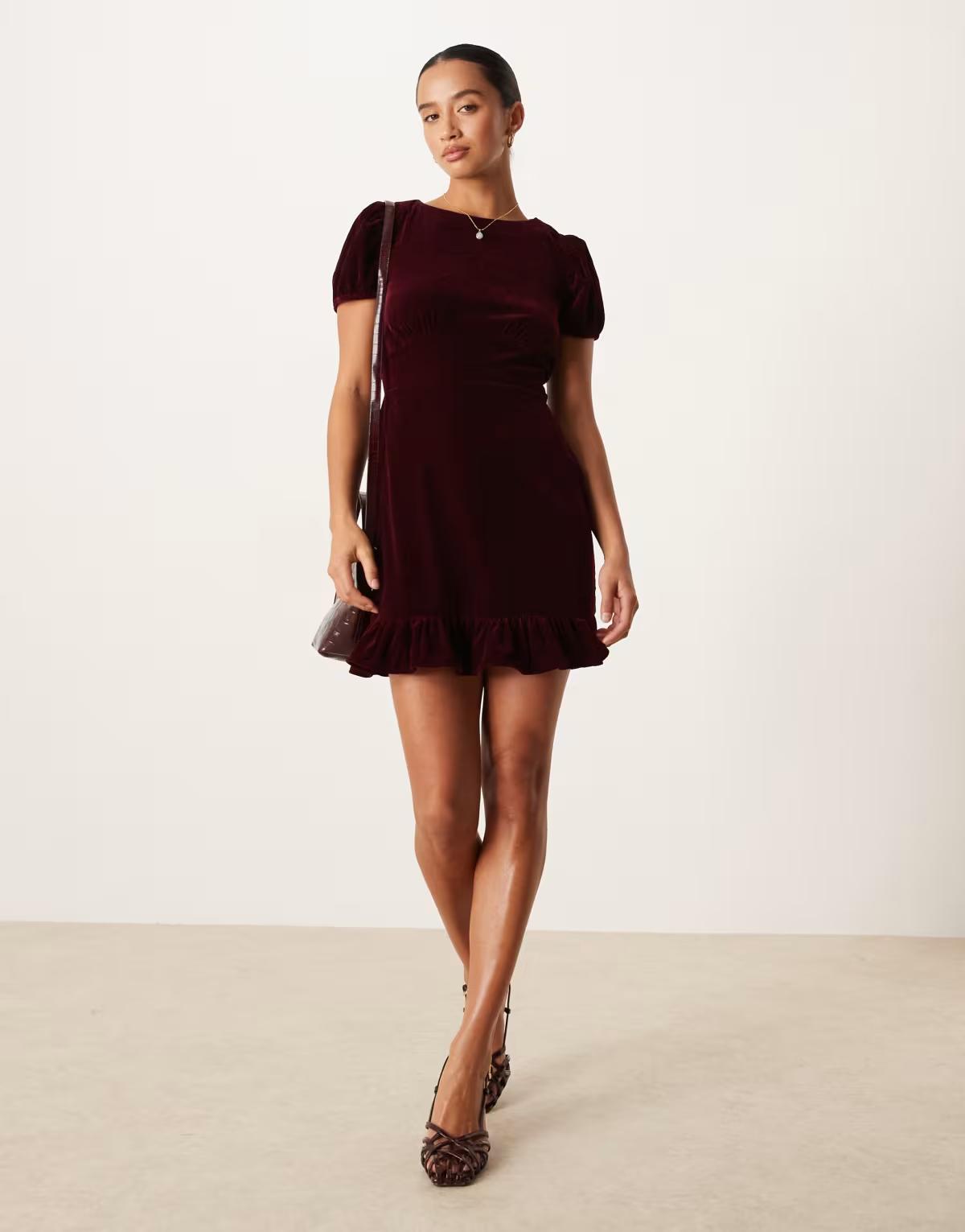 Nobody's Child Petite Cosmo velvet mini dress in burgundy