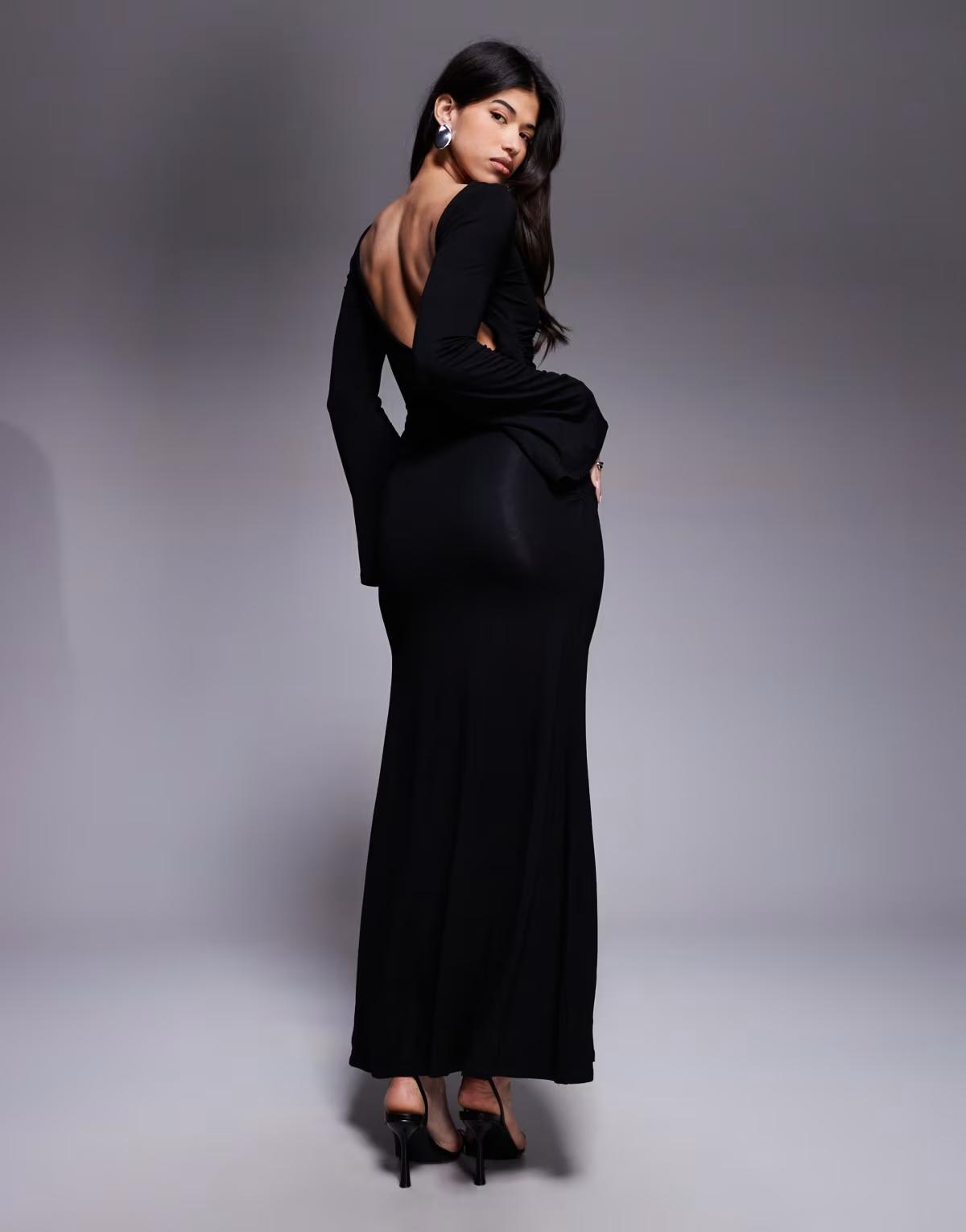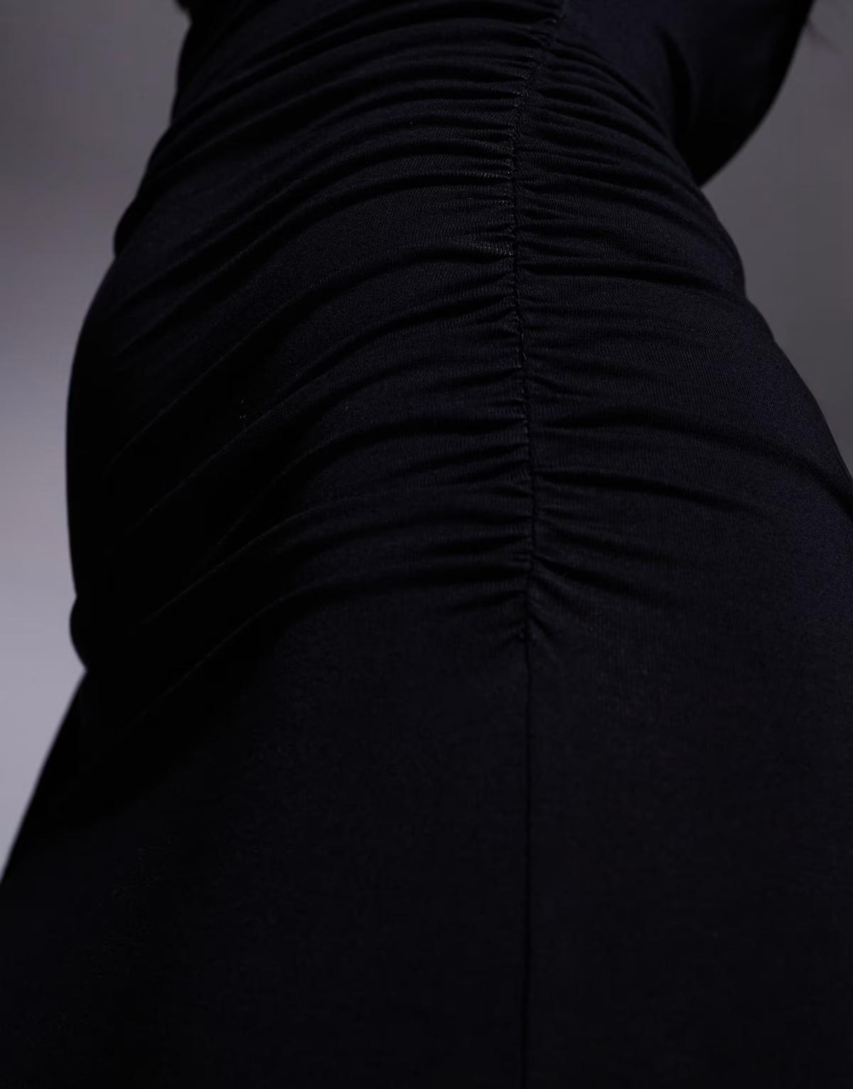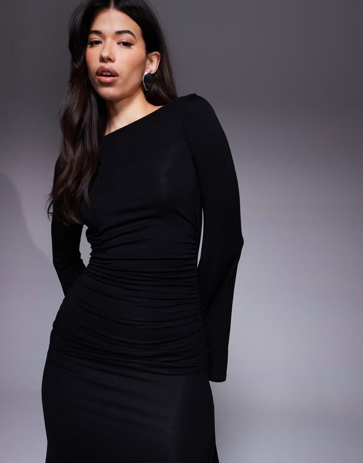 ASOS DESIGN long waterfall sleeve ruched maxi dress in black