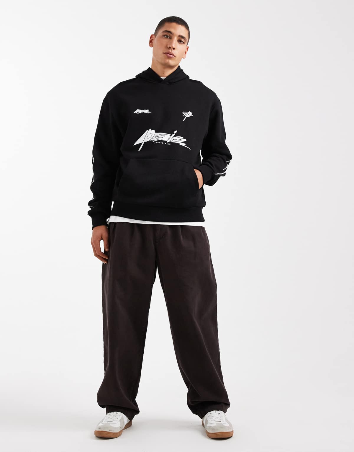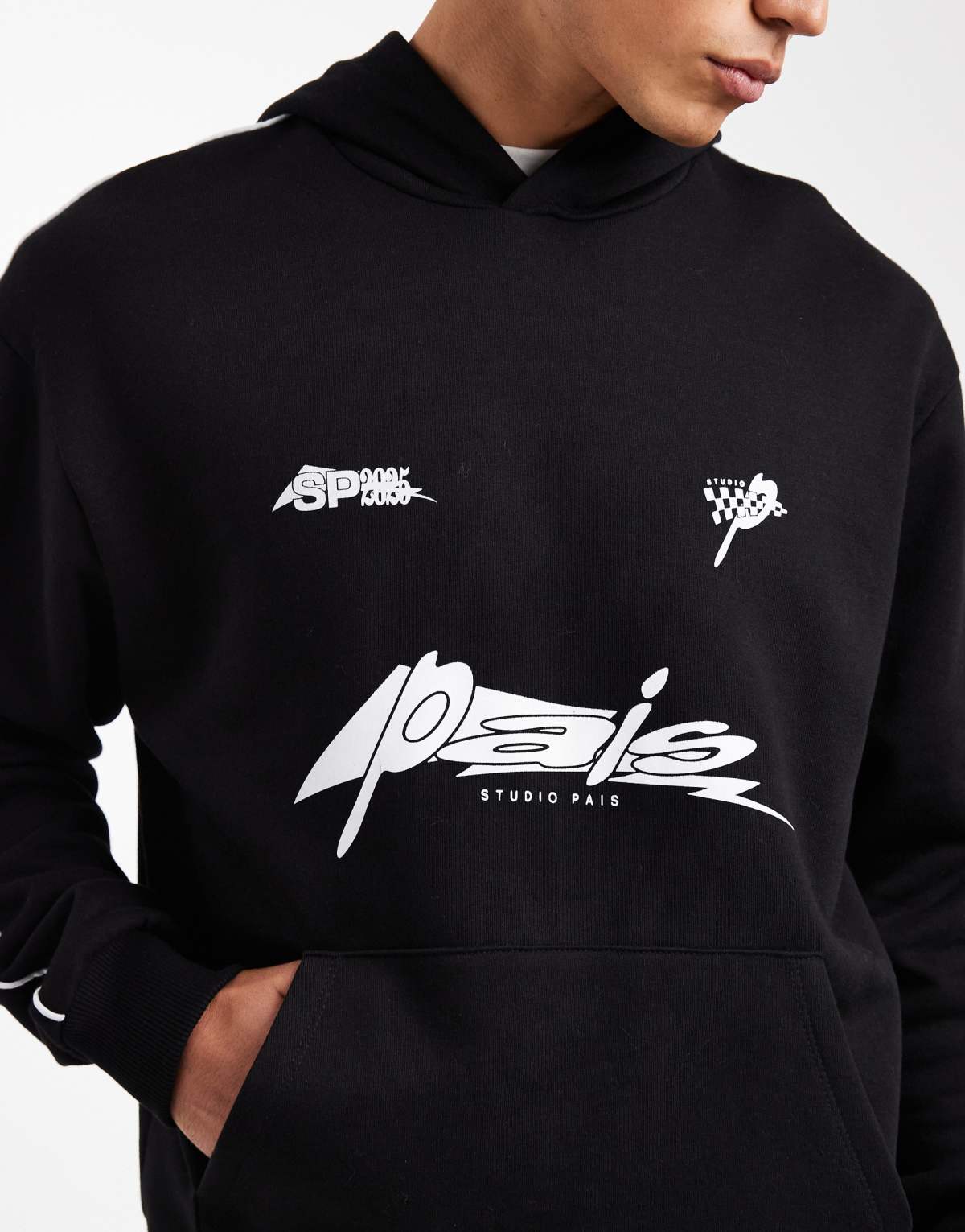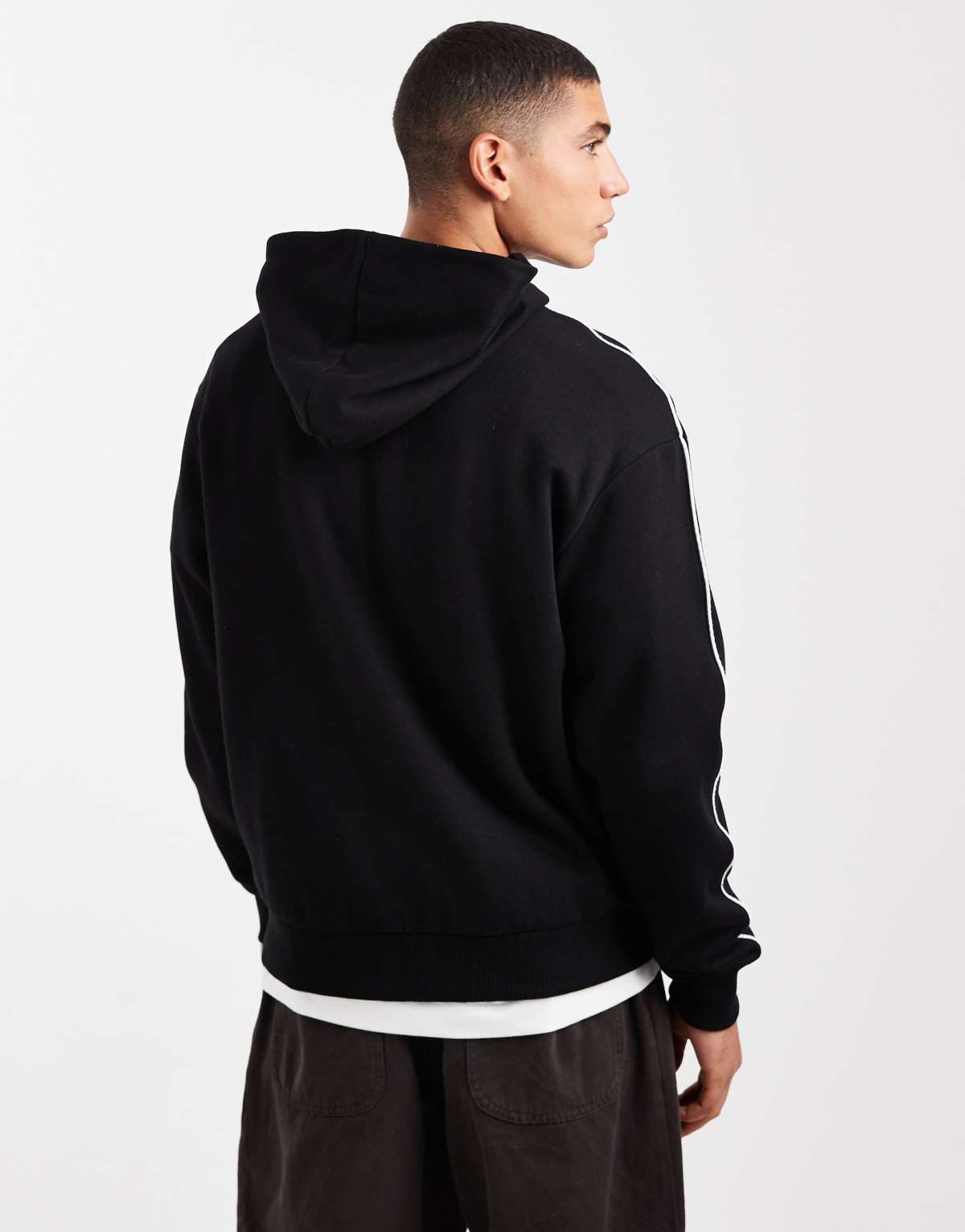 ASOS DESIGN relaxed hoodie with print and piping in black