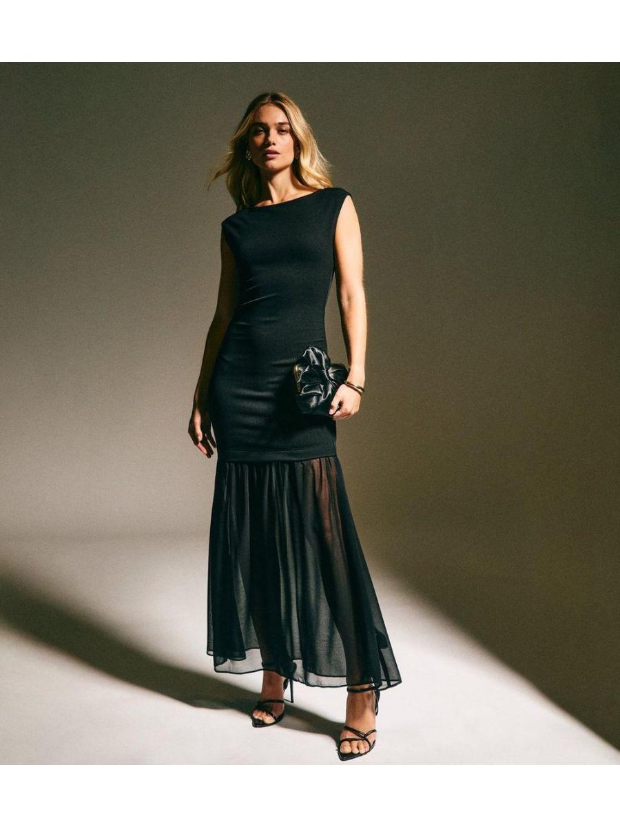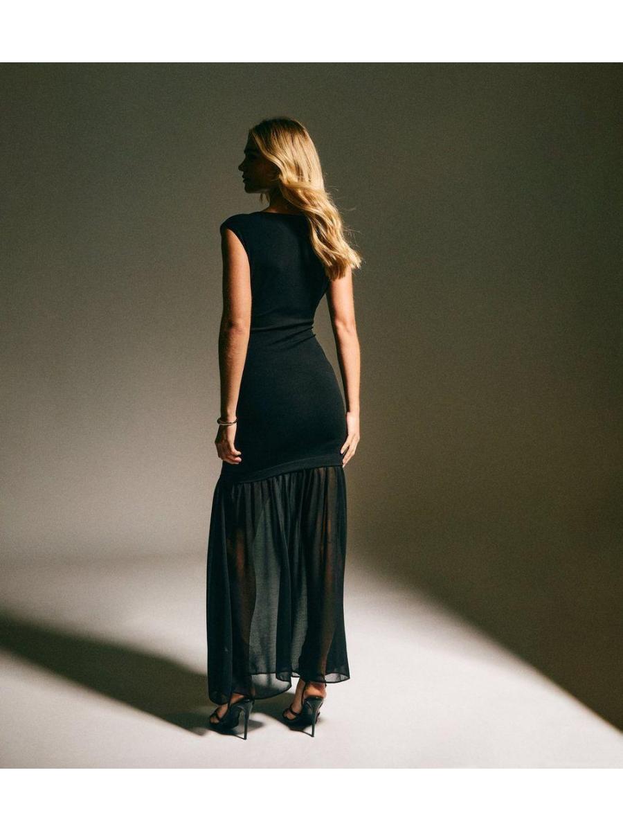 Black Sheer Hem Sleeveless Midi Dress