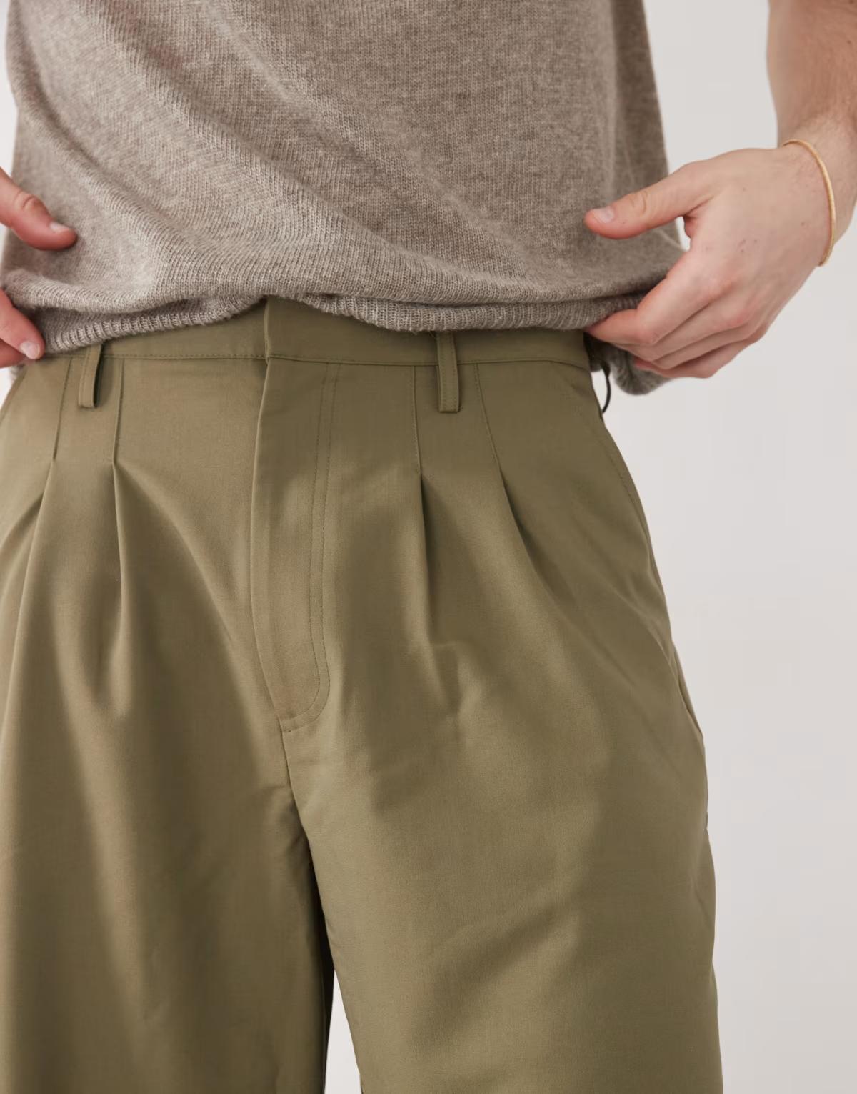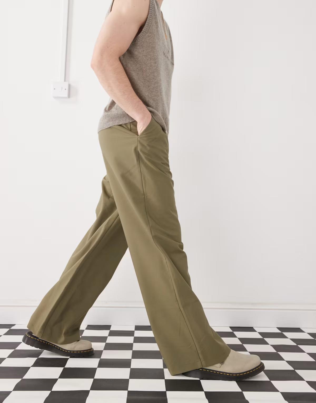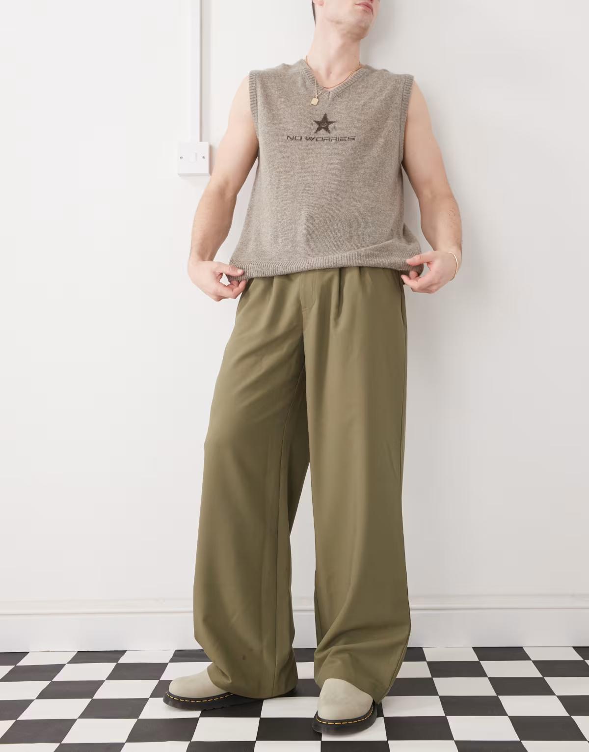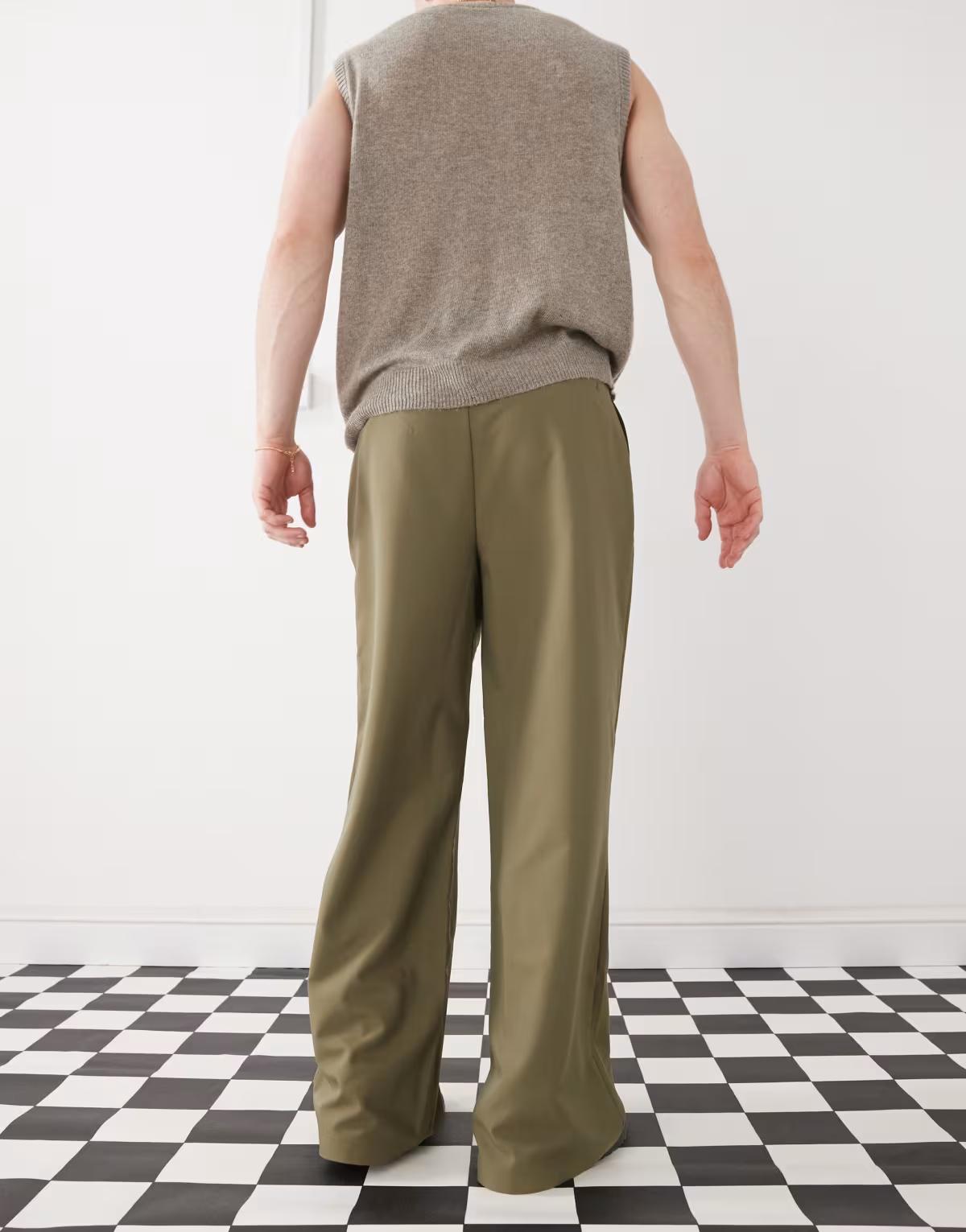 COLLUSION relaxed wide leg tailored trousers in khaki
