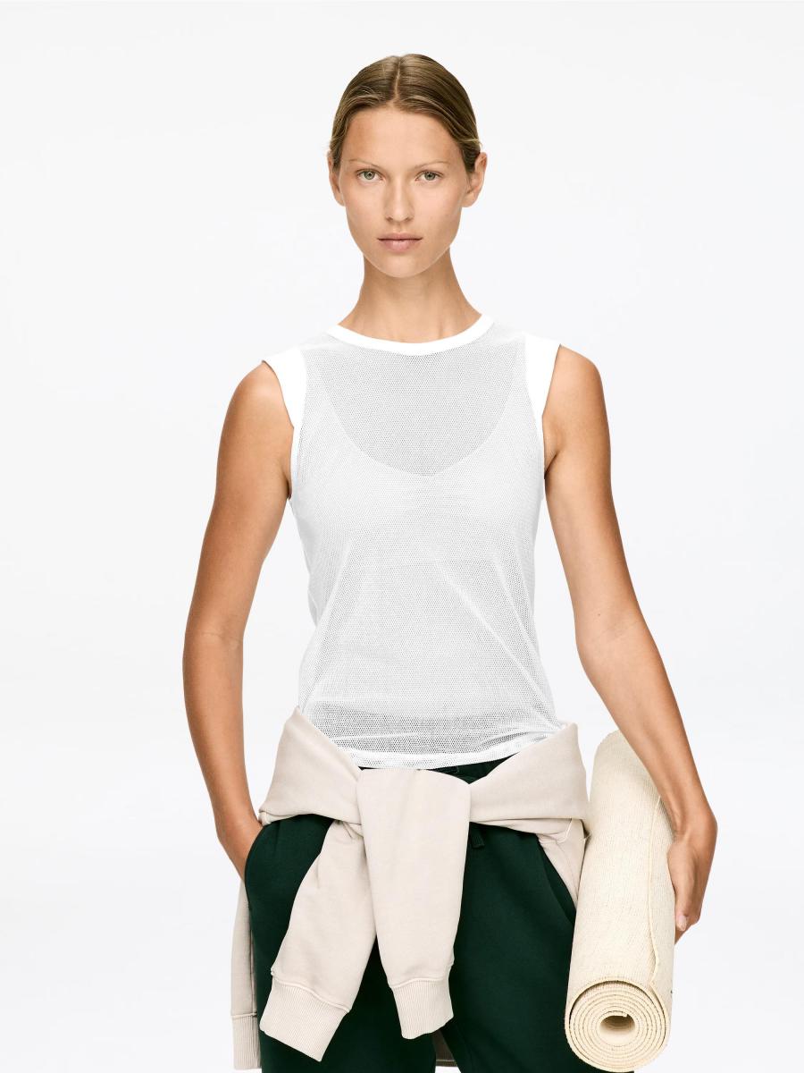 Mesh tank top crafted from cotton with a hint of elastane for stretch. Features rib binding at the neck and shoulders.ARKET/Women's clothes/Women's sportswear