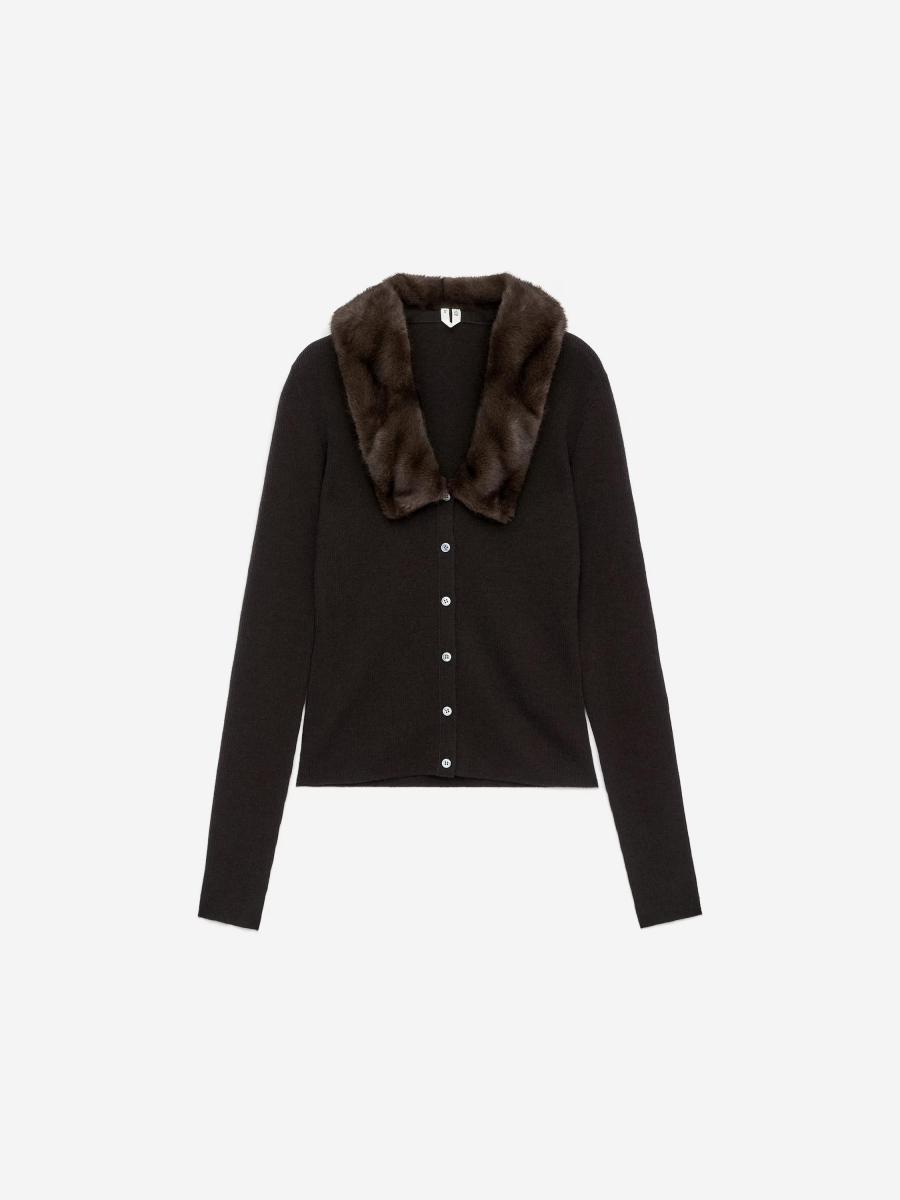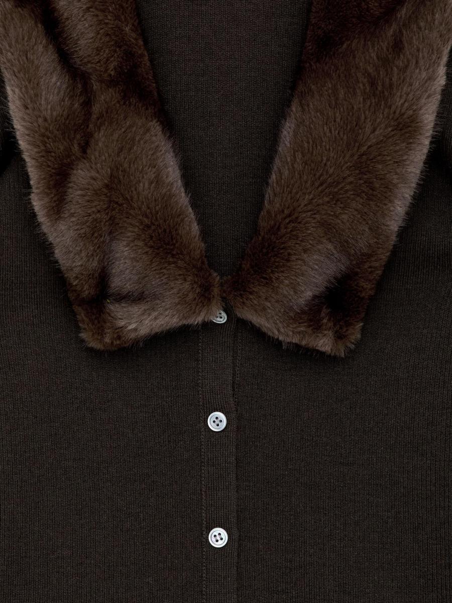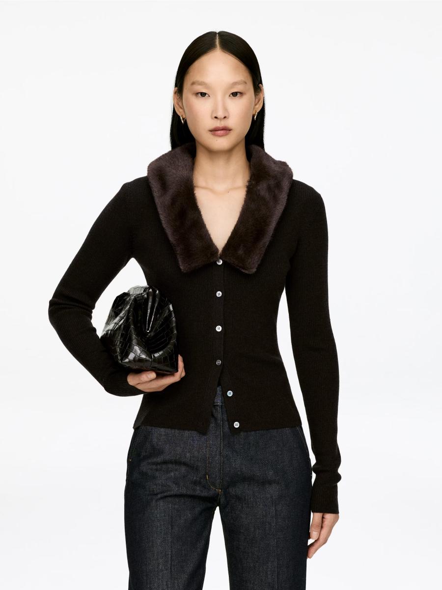 Cardigan knitted from pure wool, featuring a faux fur collar and button fastening.ARKET/Women's clothes/Women's knitwear/Women's cardigans
