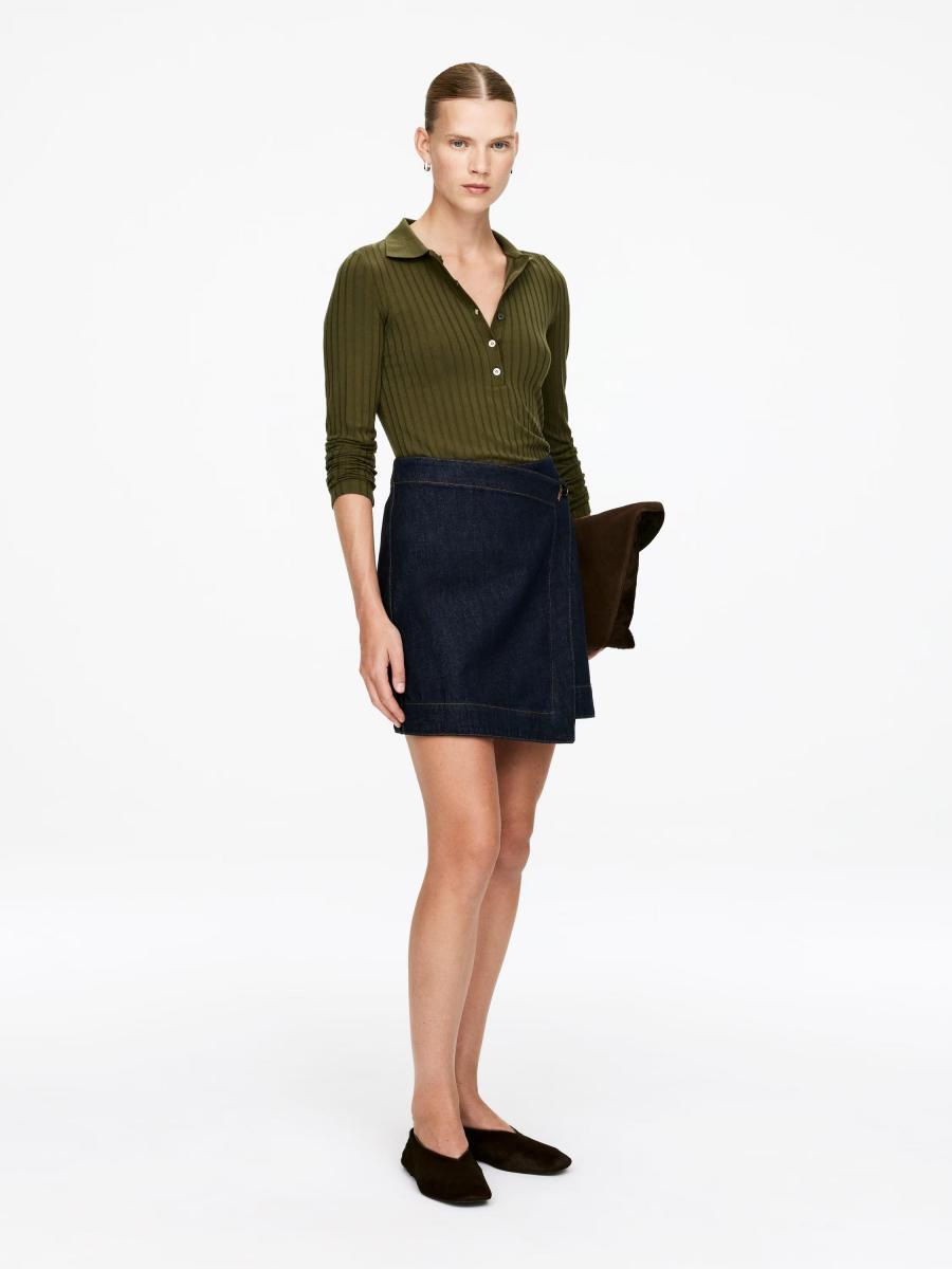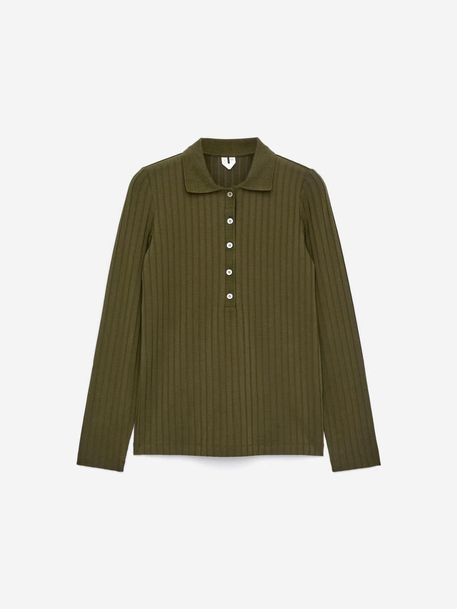 Wide-rib polo shirt with a hint of stretch for comfort. A slim-fit style with long sleeves and a buttoned half-placket.ARKET/Women's clothes/Women's knitwear