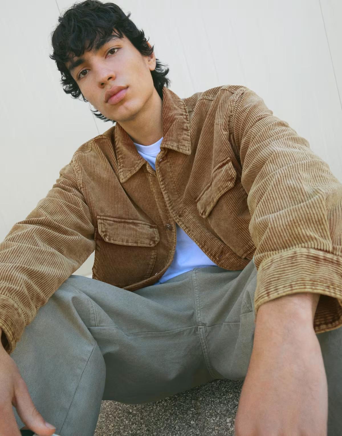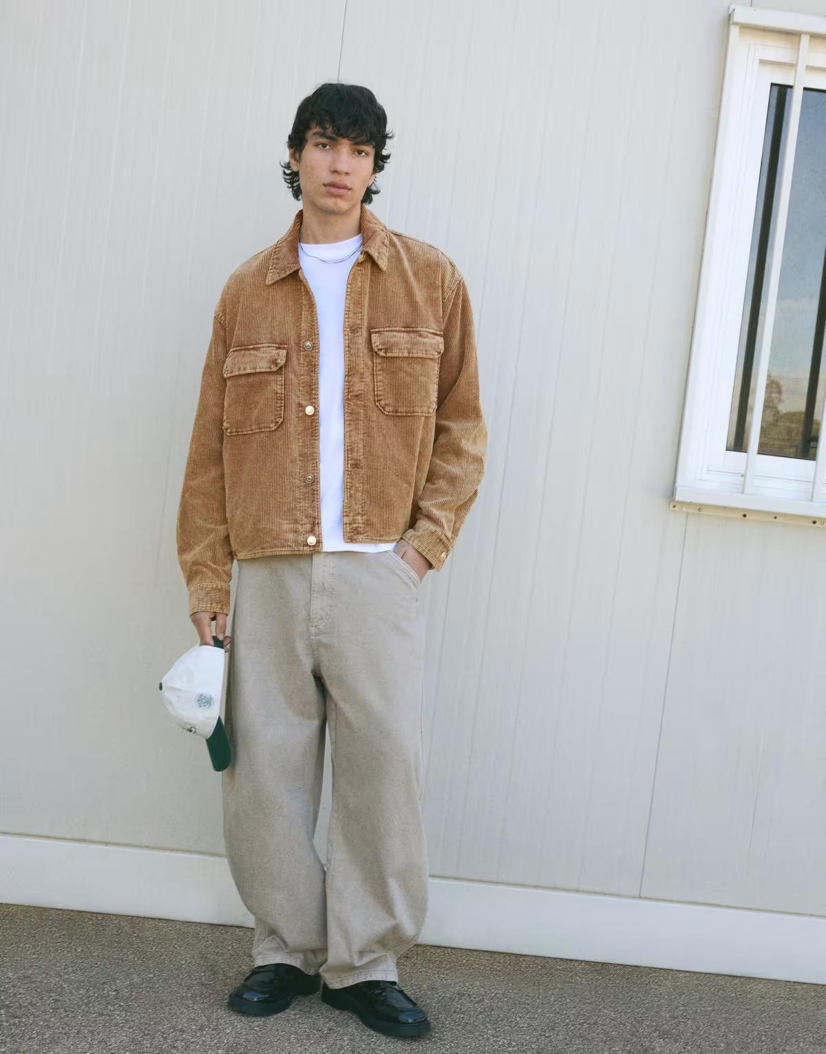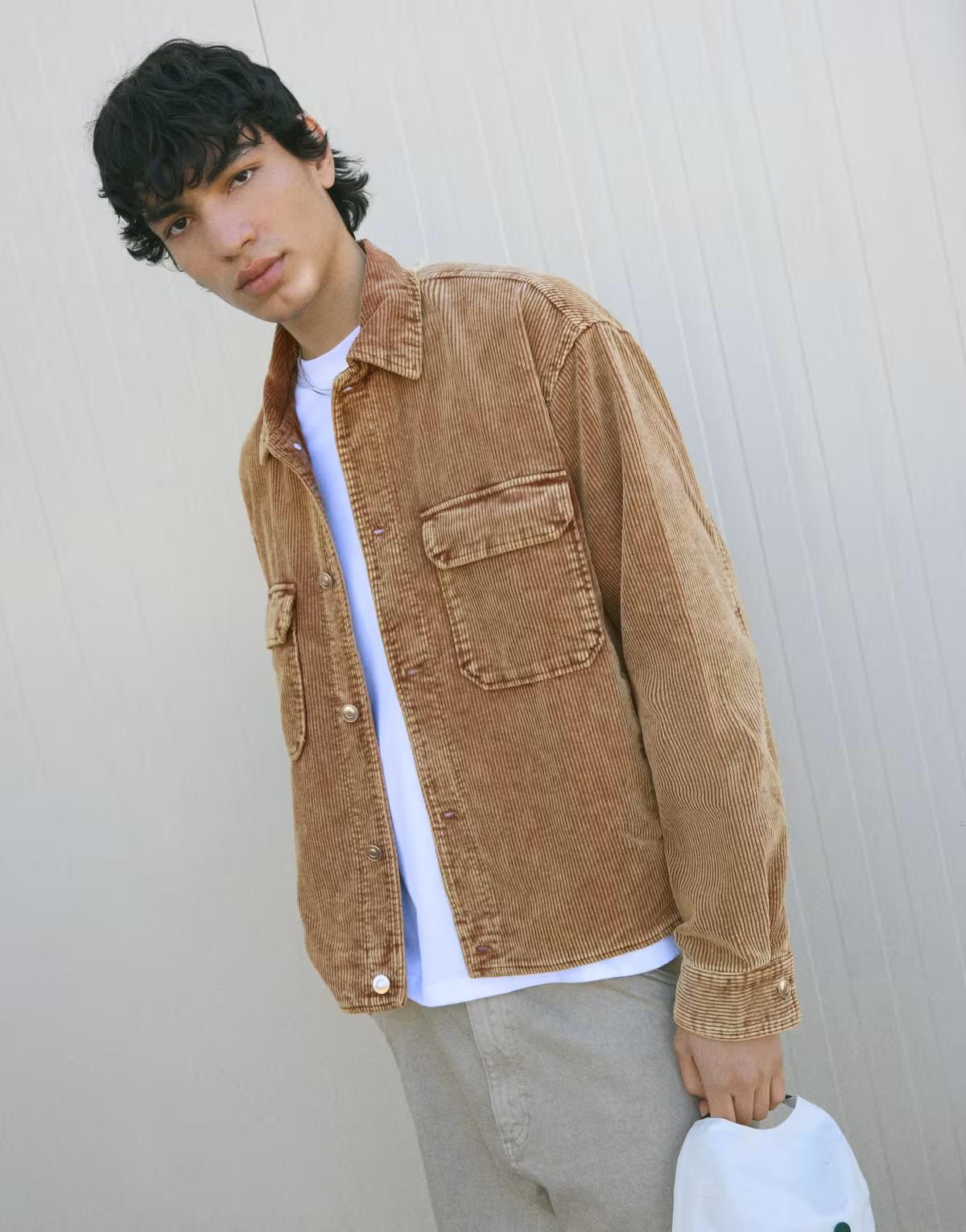 Bershka Boxy fit corduroy jacket in camel