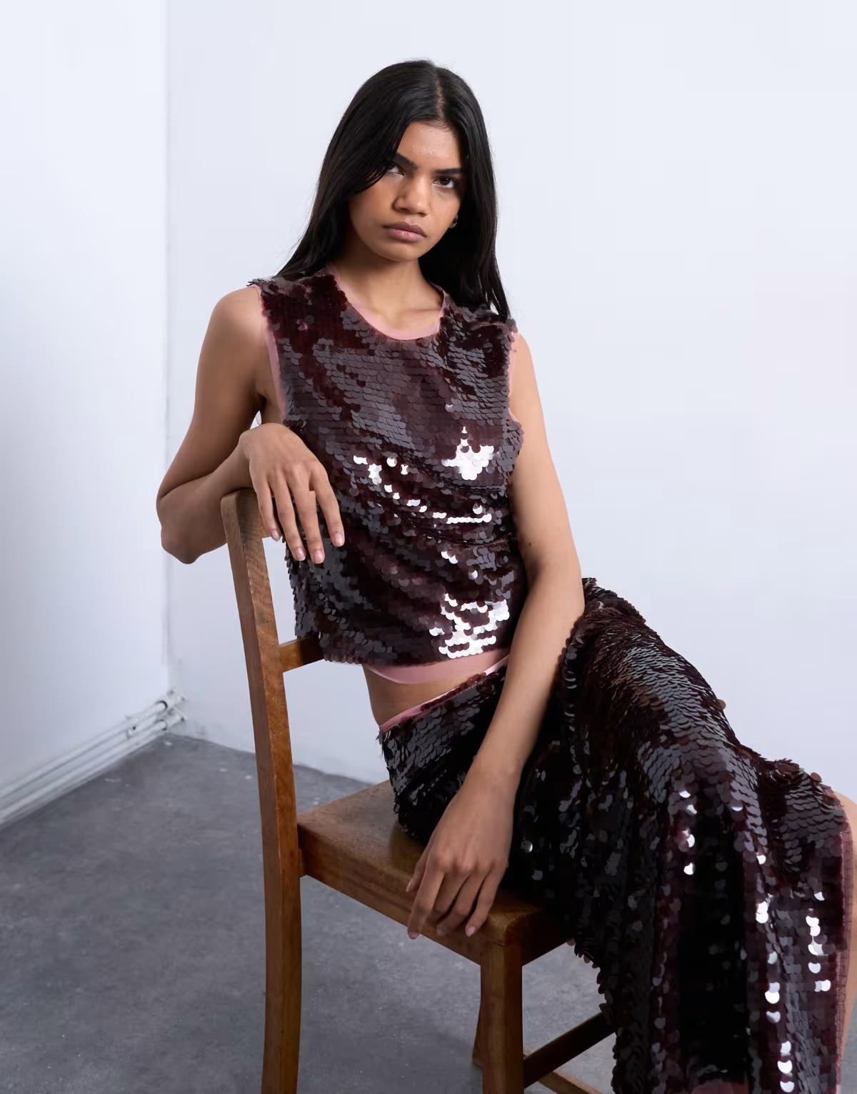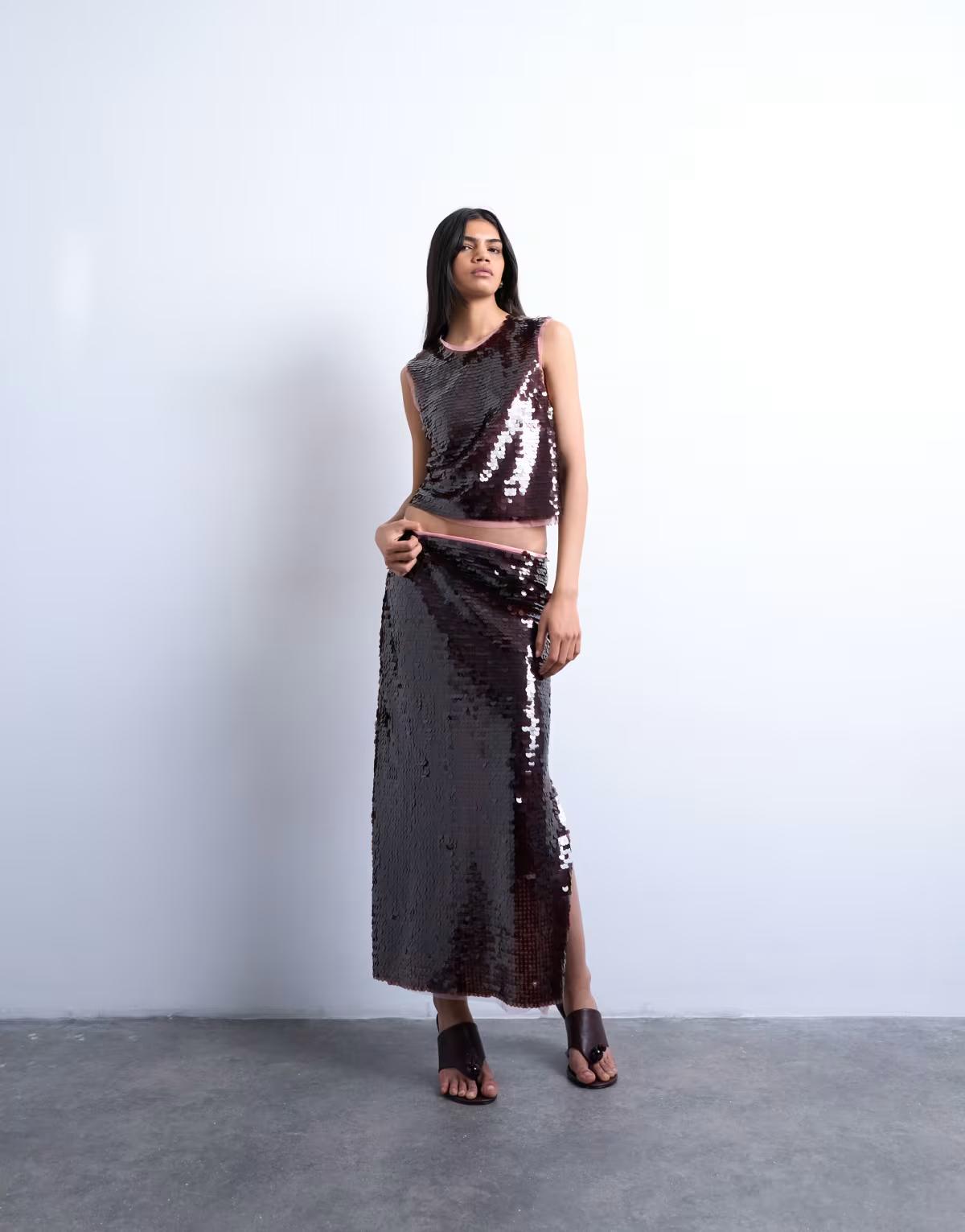 Topshop sequin co-ord in wine