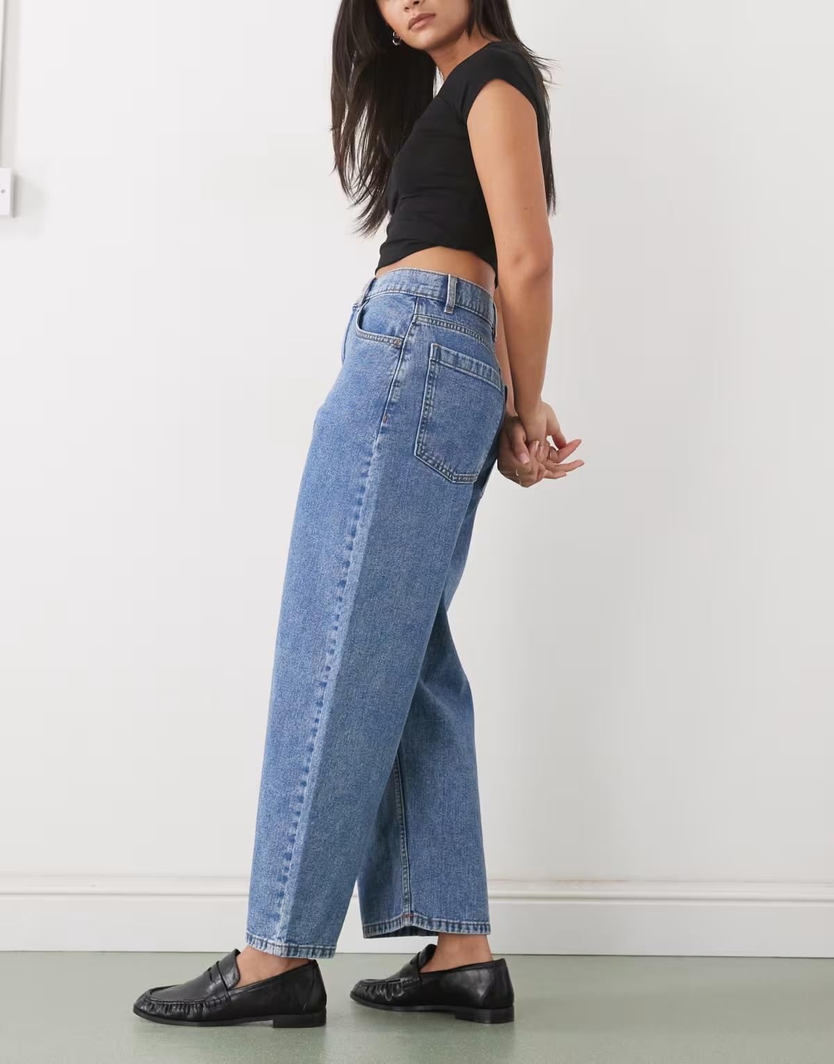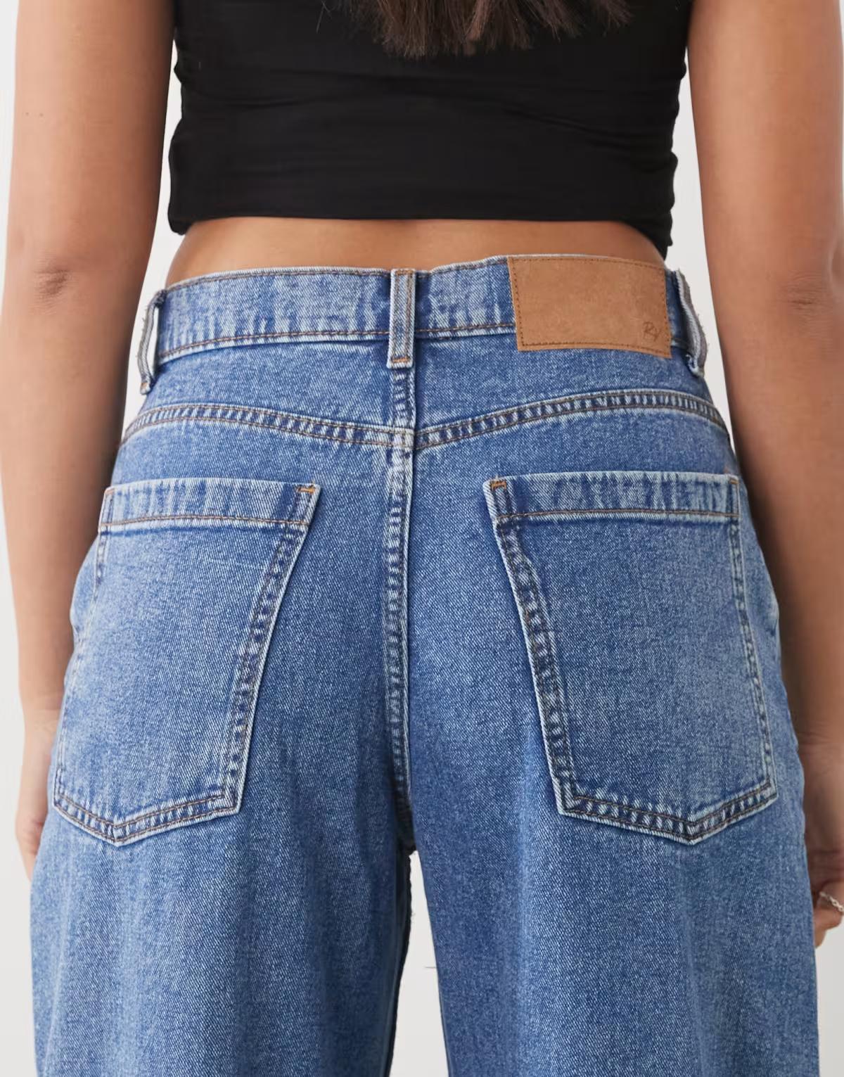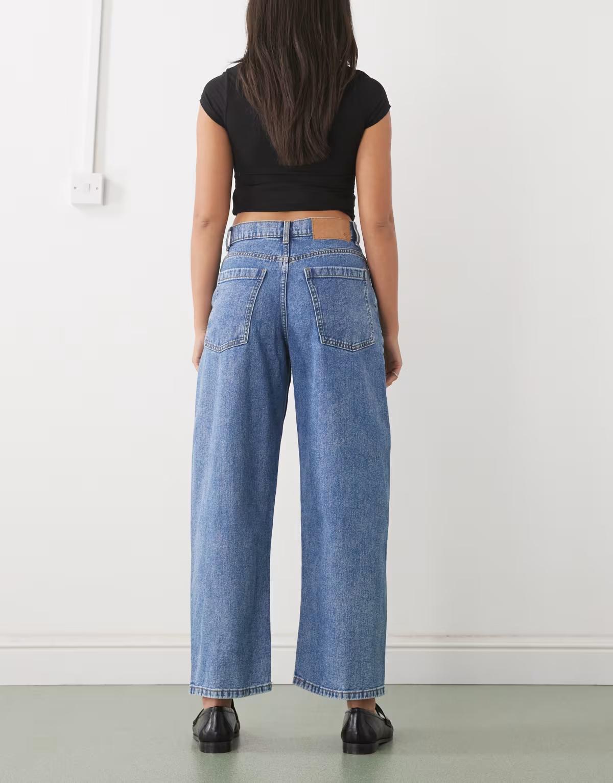 Reclaimed Vintage barrel leg denim jean in mid blue