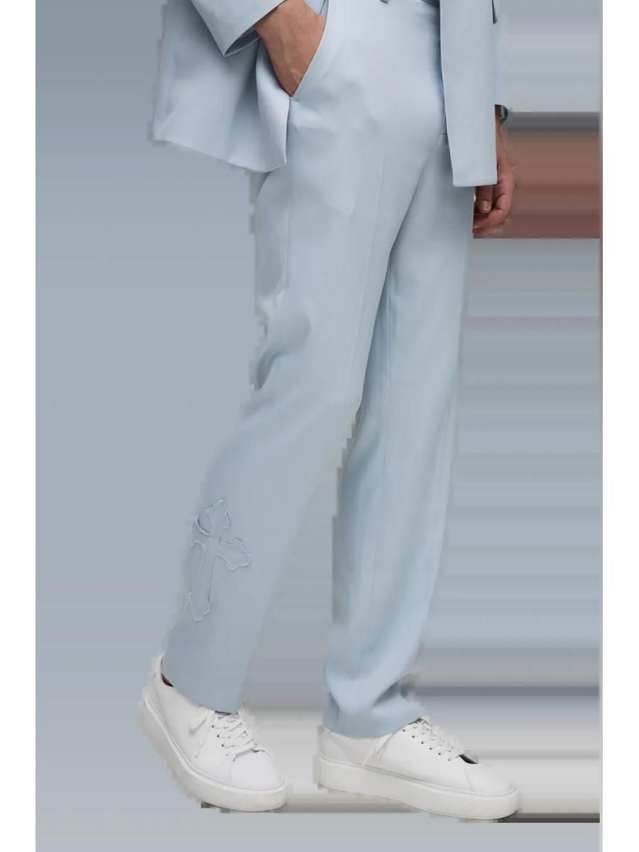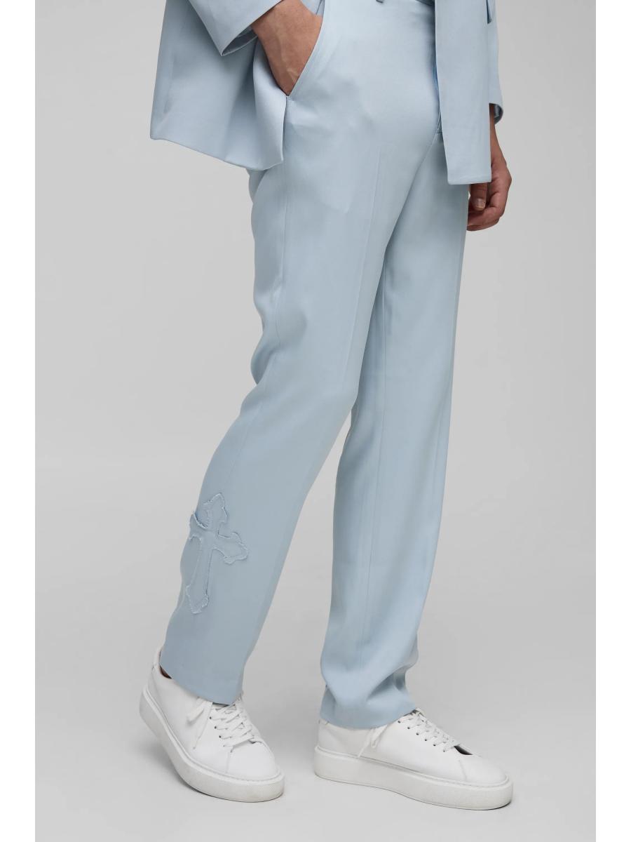 Style: Suit TrousersDesign: AppliqueFabric: PVEDetail: Front PlacementLength: RegularSleeve Length: Long Sleeve Details & Care 95% Polyester, 5% Elastane. Model is 6'1 & wears UK size M/32