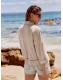 Neutral Stone Linen Blend Short Sleeve Ladder Insert Shirt