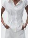 Diseño entallado. Cuello camisero. Manga corta. Detalle de pinzas en la cintura. Cierre delantero con botones. Disponible Plus. Largo de costado 36.3 cm. Largo de la espalda 66.6 cm