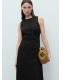 Tejido de algodón. Diseño midi. Diseño evasé. Motivos bordados. Detalles calados. Cuello redondo. Sin mangas. Cintura drapeada. Abertura en la espalda. Lazo decorativo en la espalda. Cierre de cremallera en la parte posterior. Forro interior. Largo de costado 88.5 cm. Largo de la espalda 81.0 cm